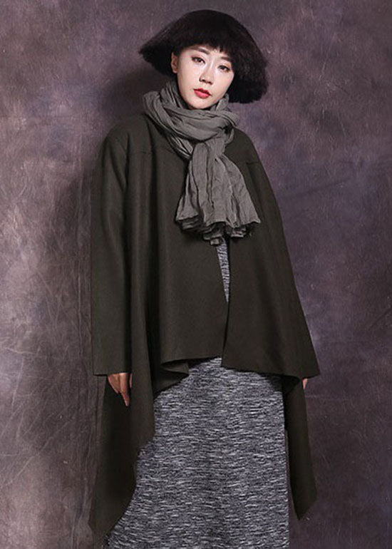 Fitted Tea Green Asymmetrical Solid Coat Spring