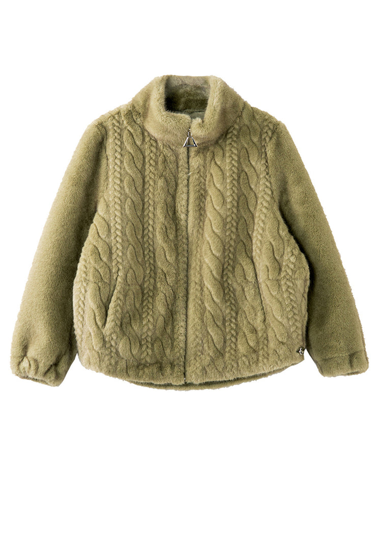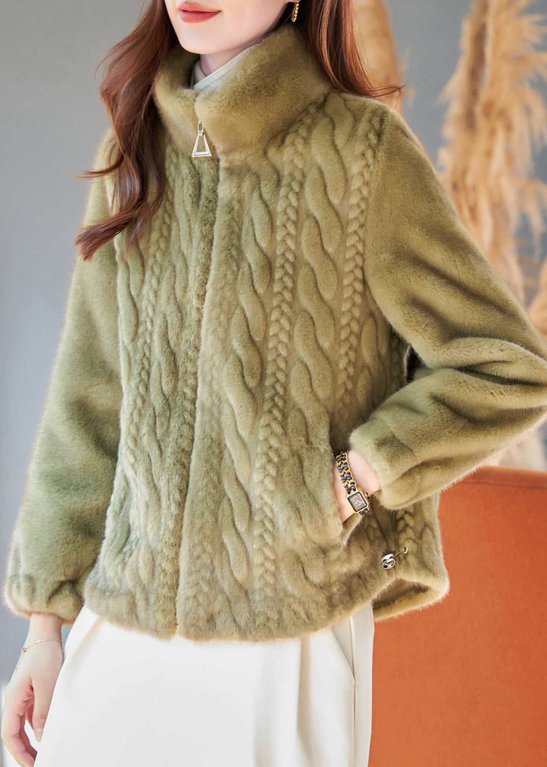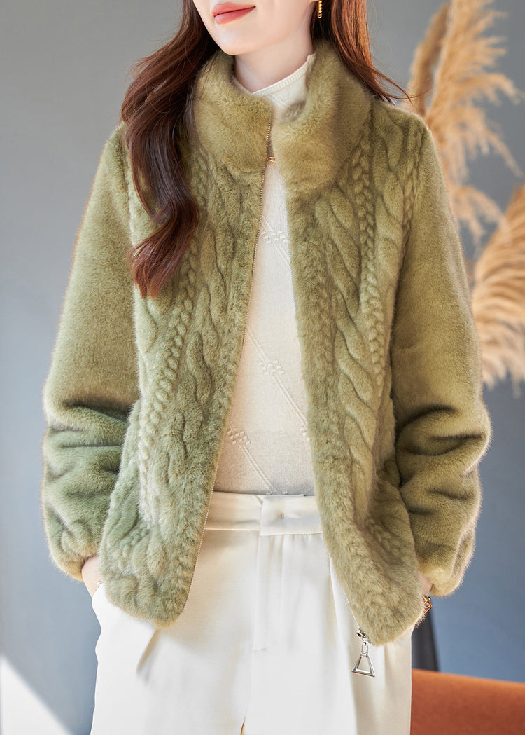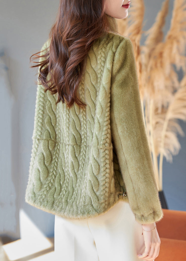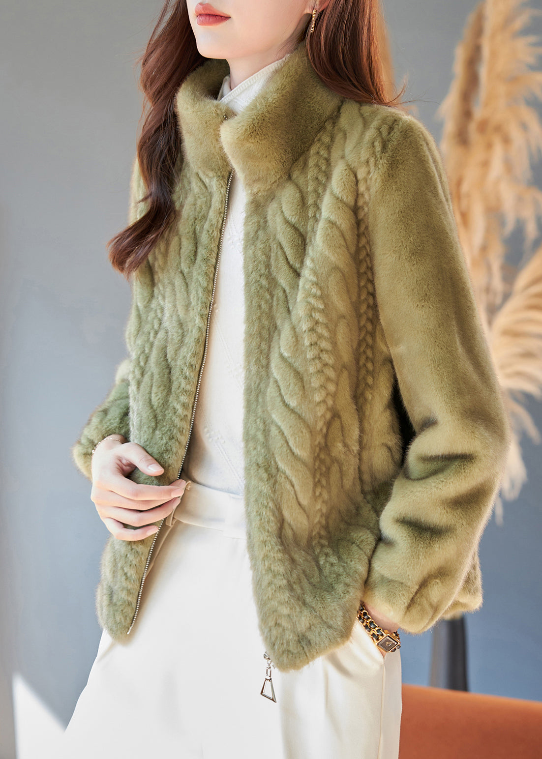 French Grass Green Stand Collar Warm Mink Velvet Coats Winter