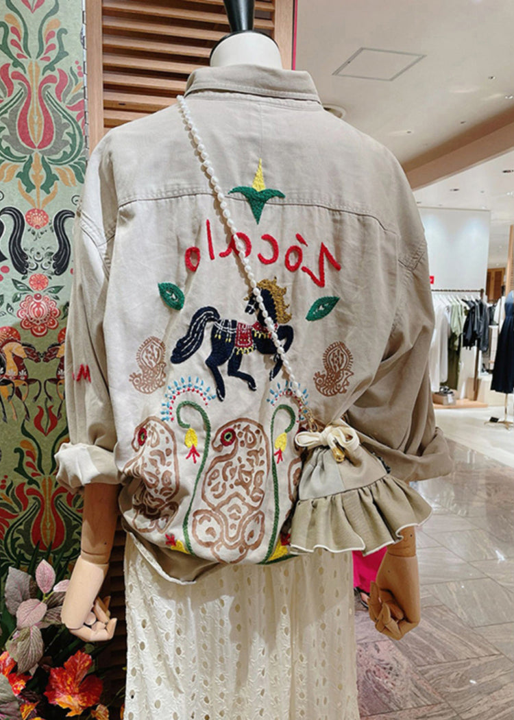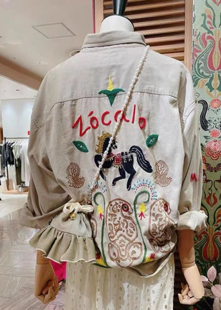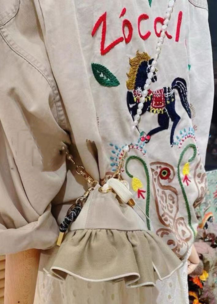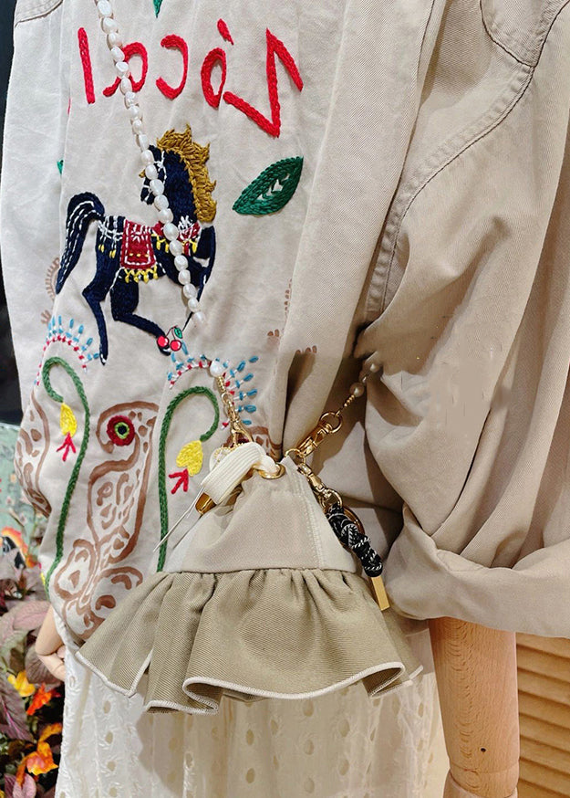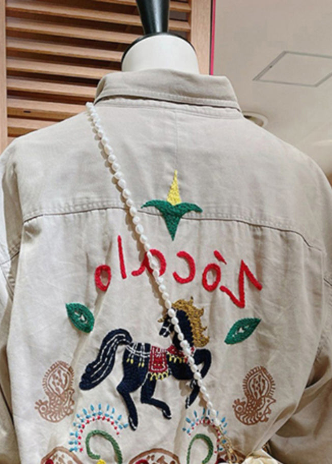 French Light Grey Embroidered Solid Cotton Coat Long Sleeve