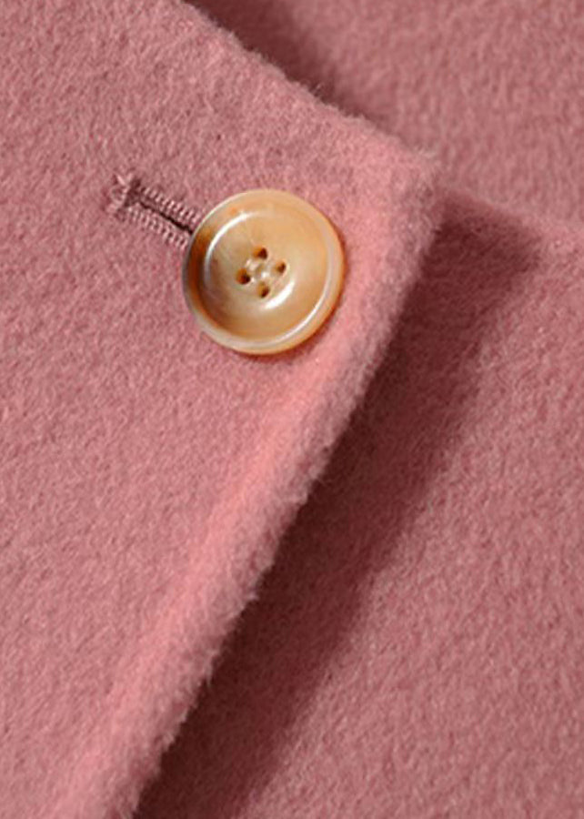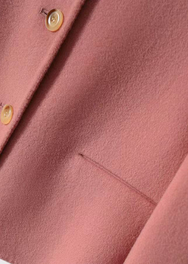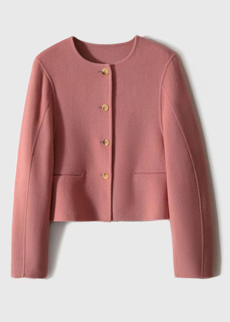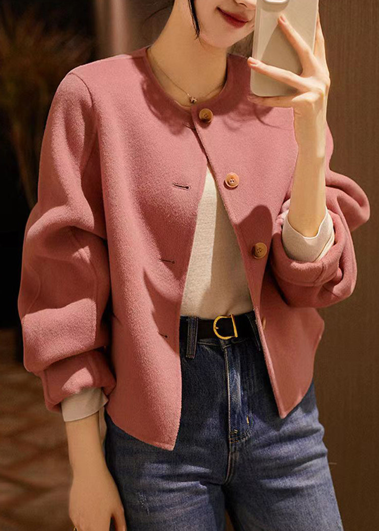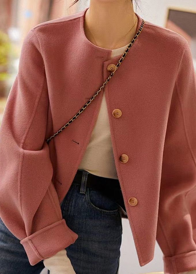 Handmade Pink O Neck Button Patchwork Woolen Coats Winter
