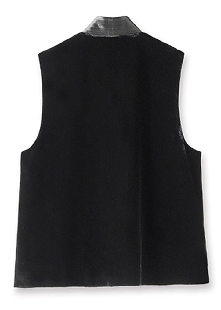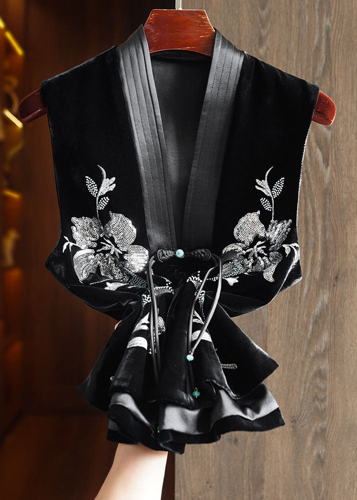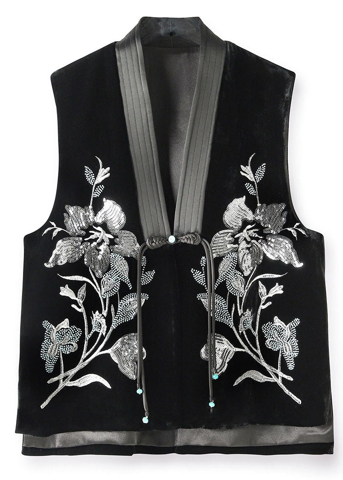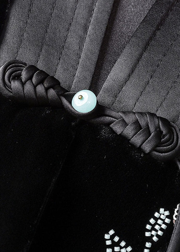 Italian Black V Neck Patchwork Embroideried Button Silk Velour Coat Fall
