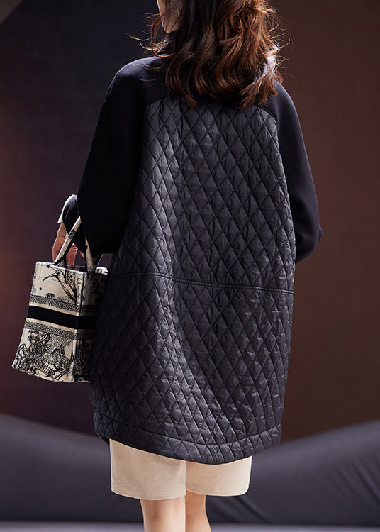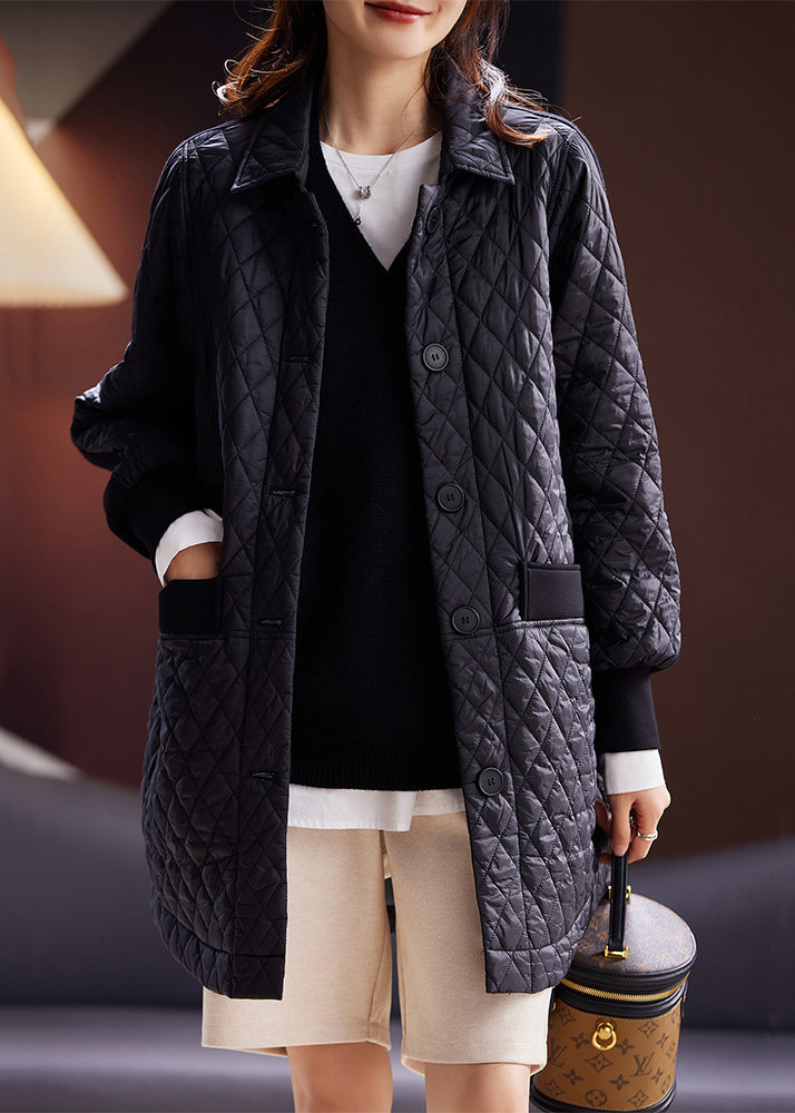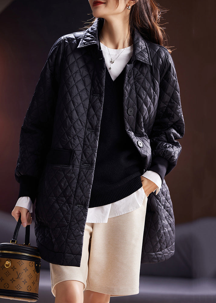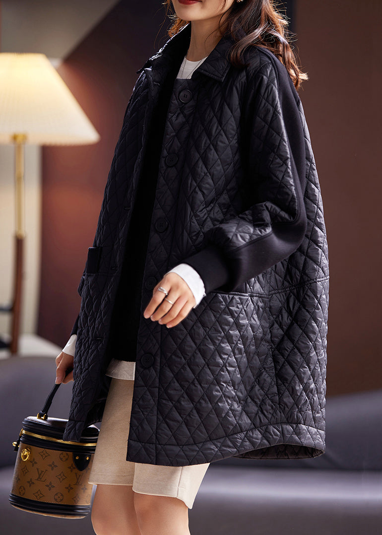 Loose Black Peter Pan Collar Pockets Cotton Filled Coat Spring