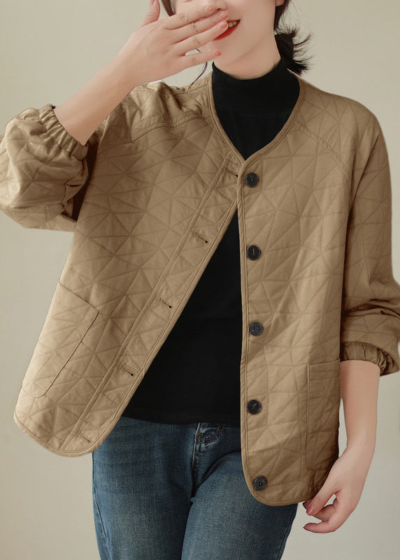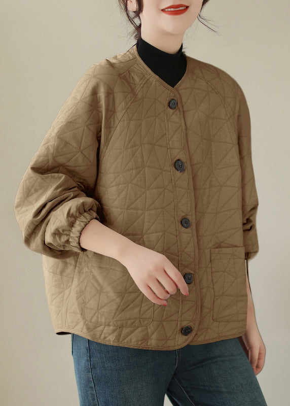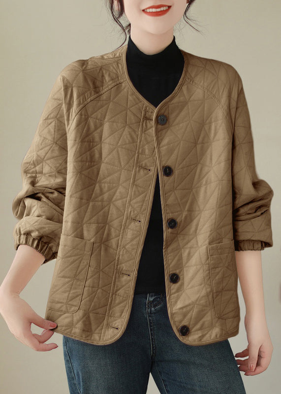 Loose Khaki Button Pockets Thick Coats Long Sleeve