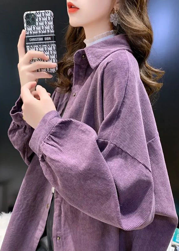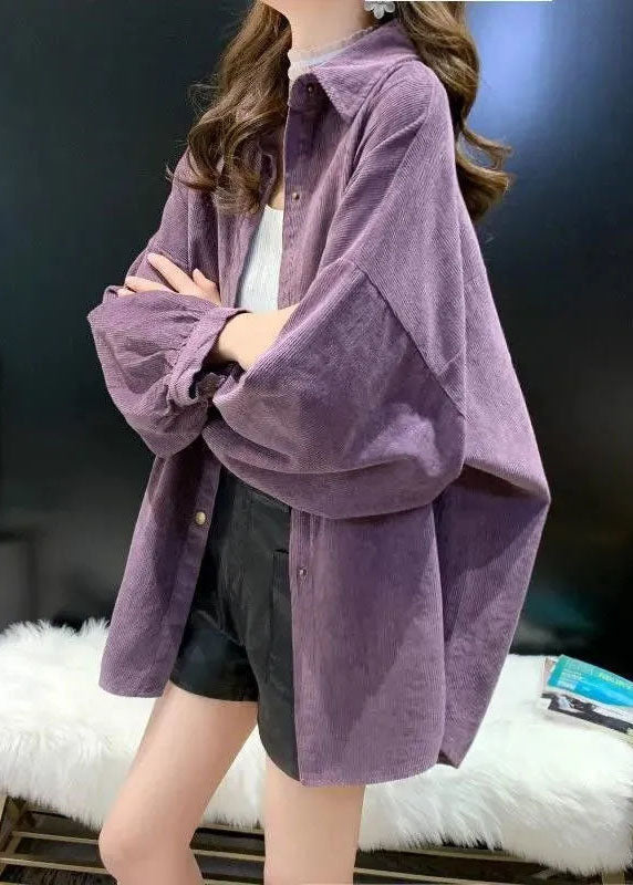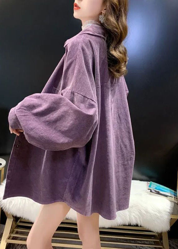 Loose Purple Peter Pan Collar Pockets Corduroy Jackets Spring