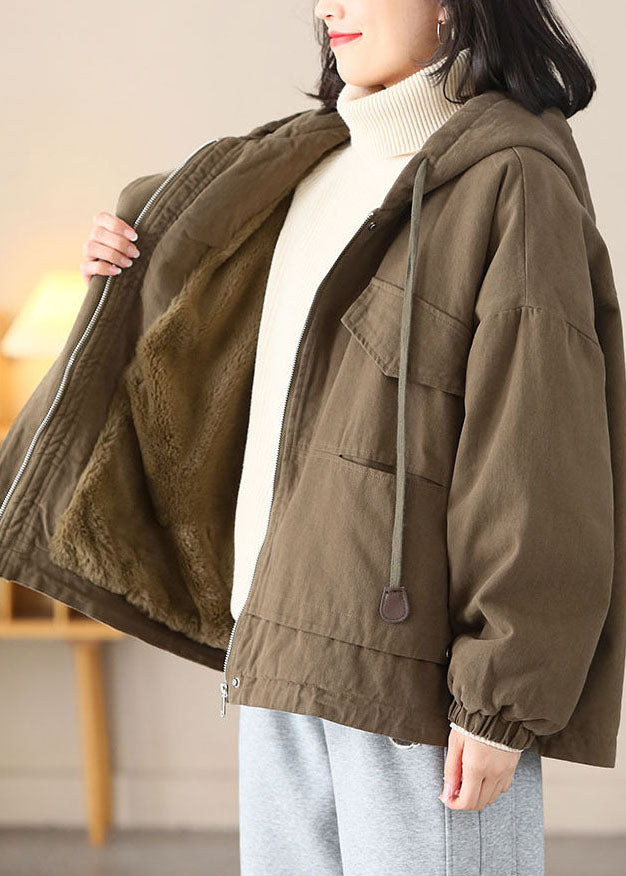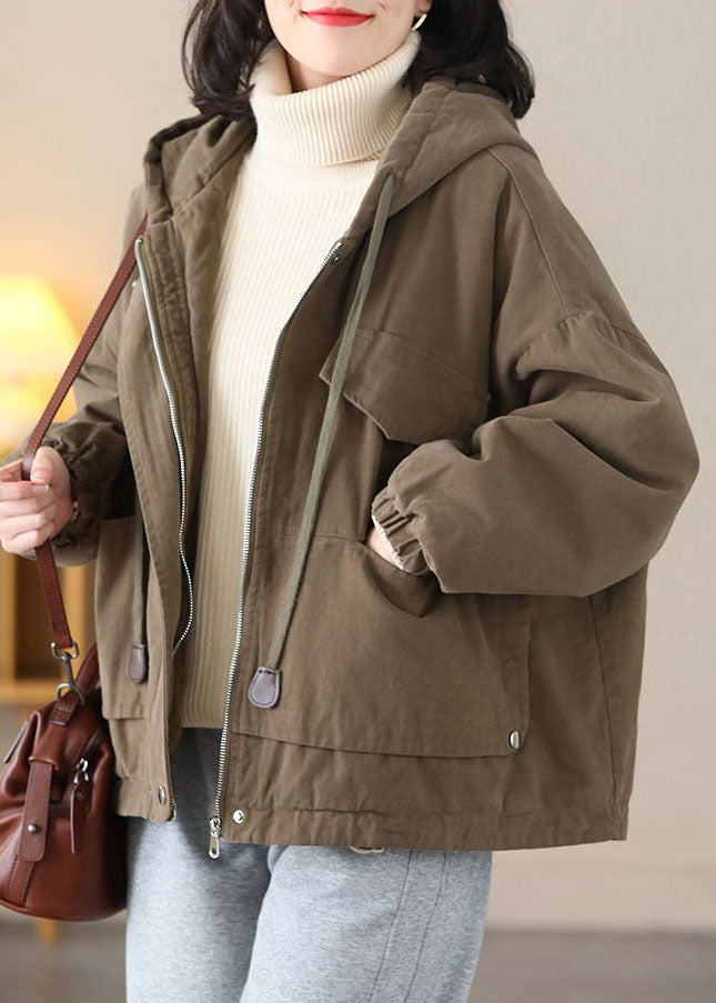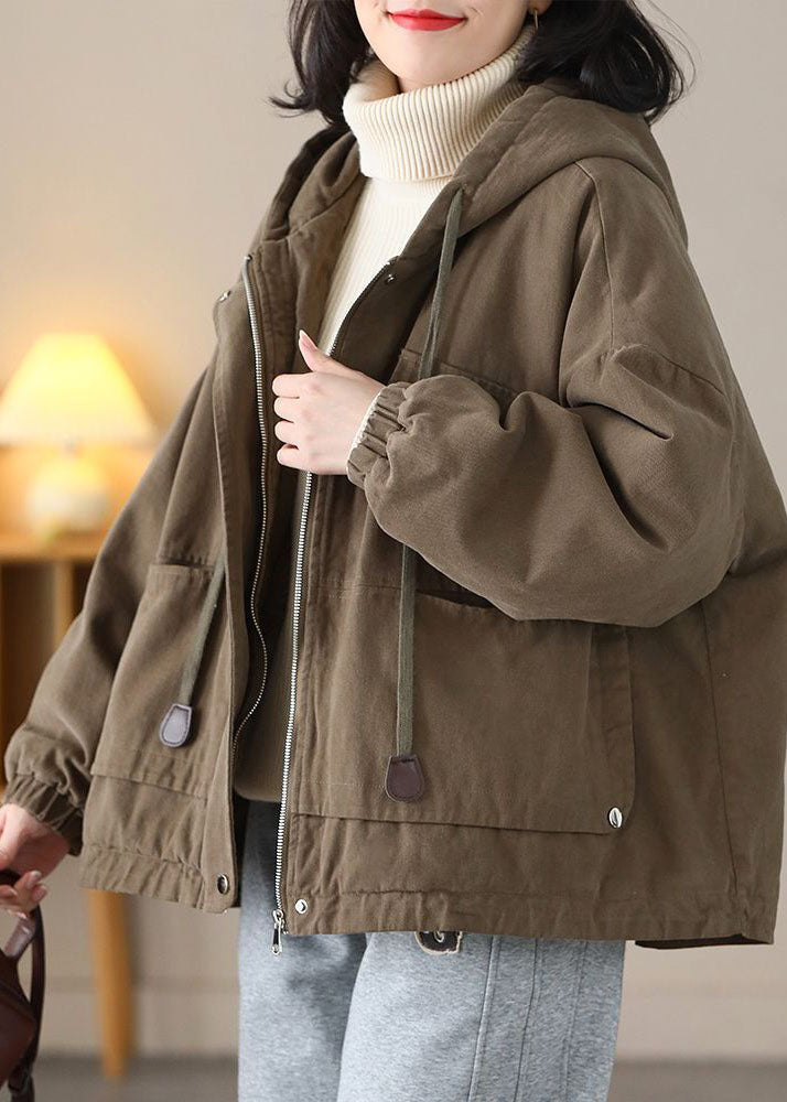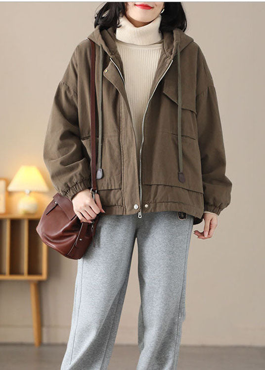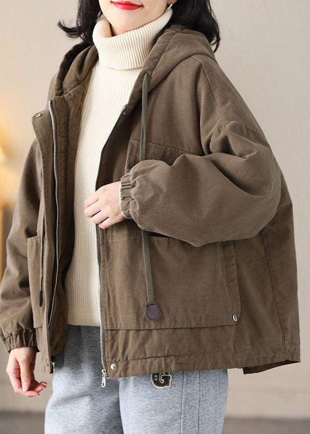 Modern Coffee Hooded Oversized Drawstring Warm Fleece Jackets Spring