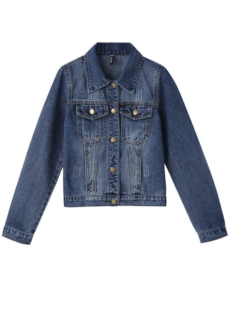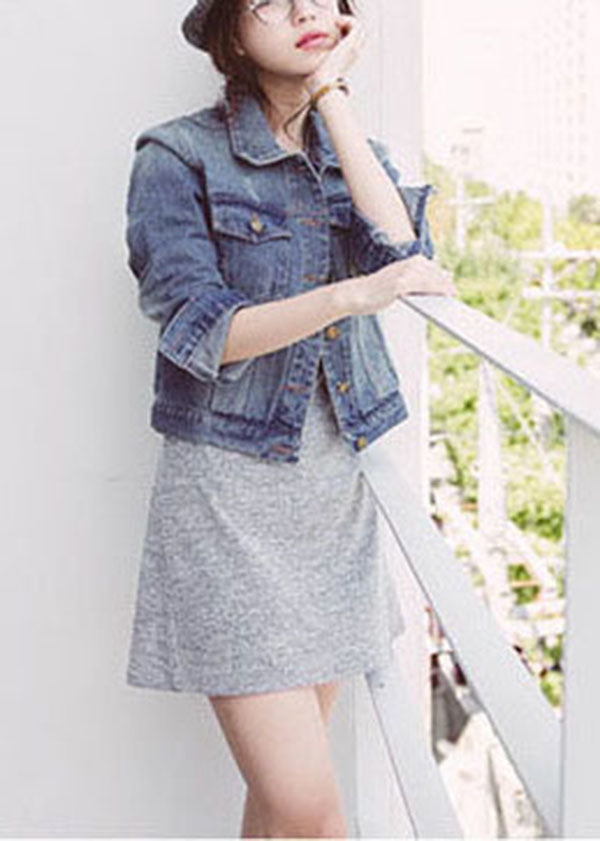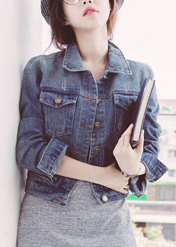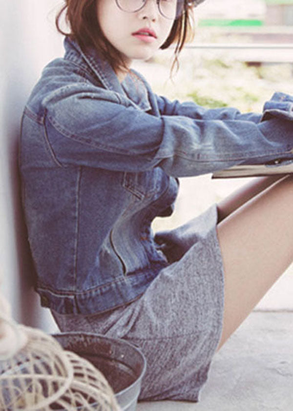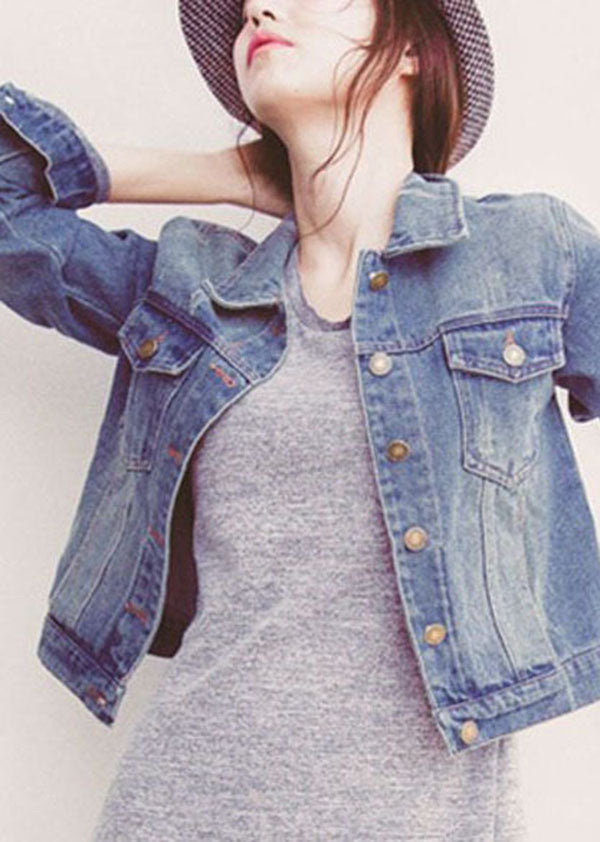 Modern Light Blue Peter Pan Collar Pockets Cotton Denim Coats Spring