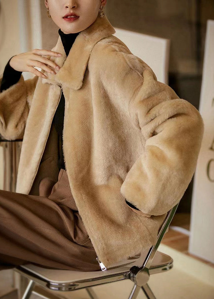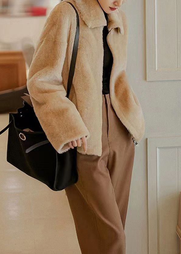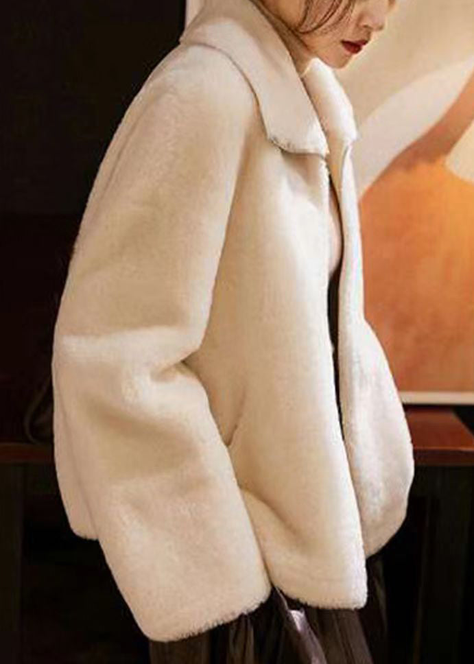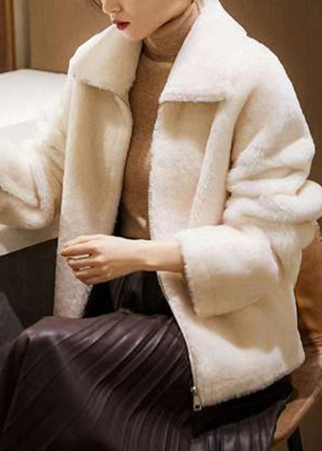 Modern White Peter Pan Collar Zip Up Patchwork Wool Jacket Winter