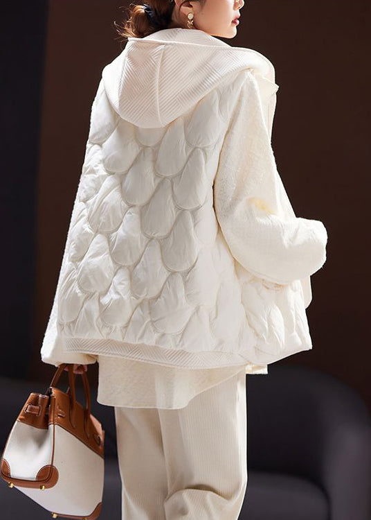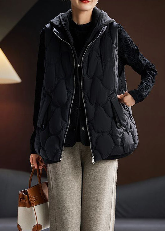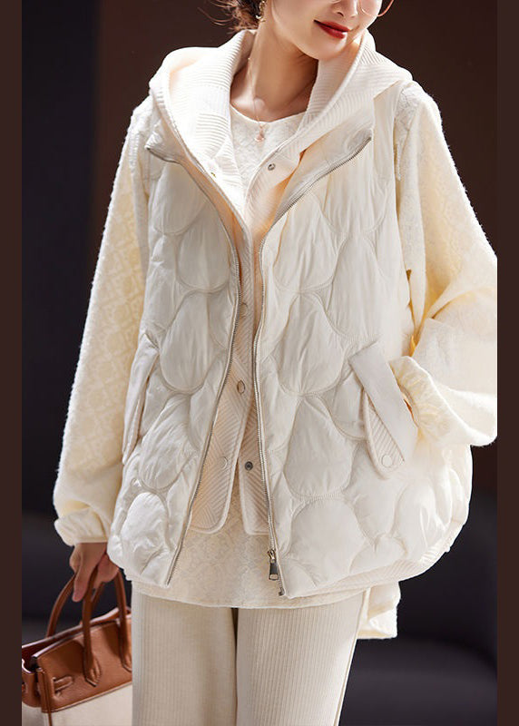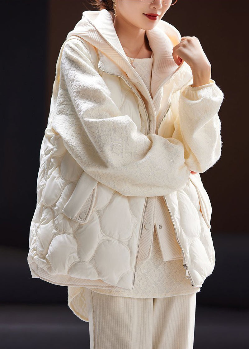 New Beige Hooded Patchwork False Two Pieces Duck Down Waistcoat Sleeveless
