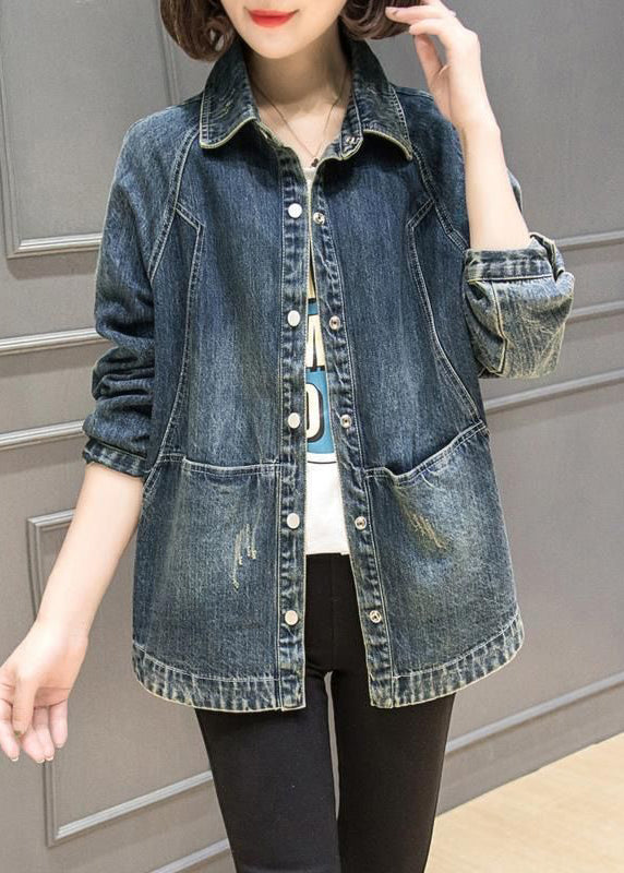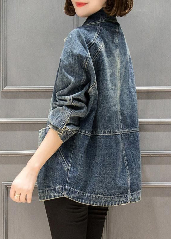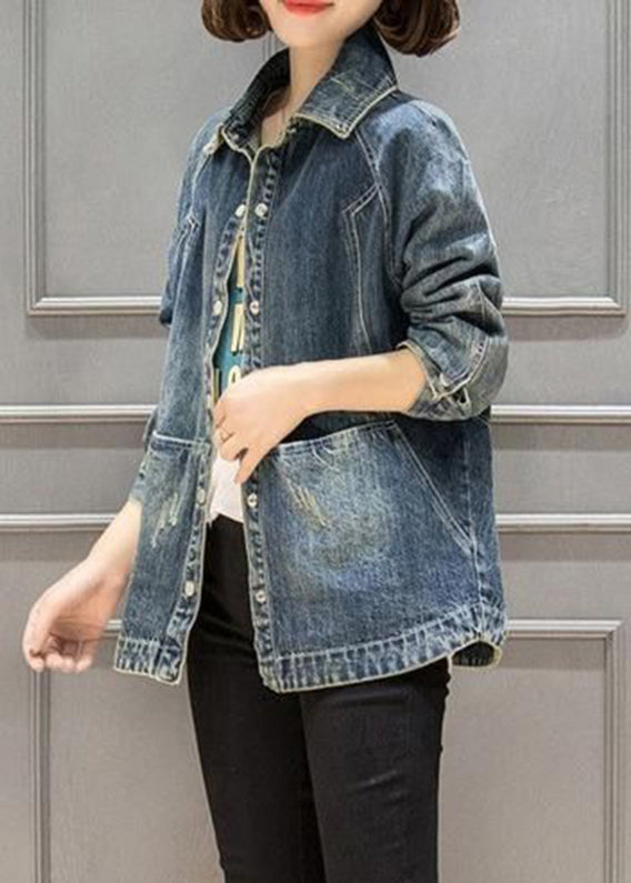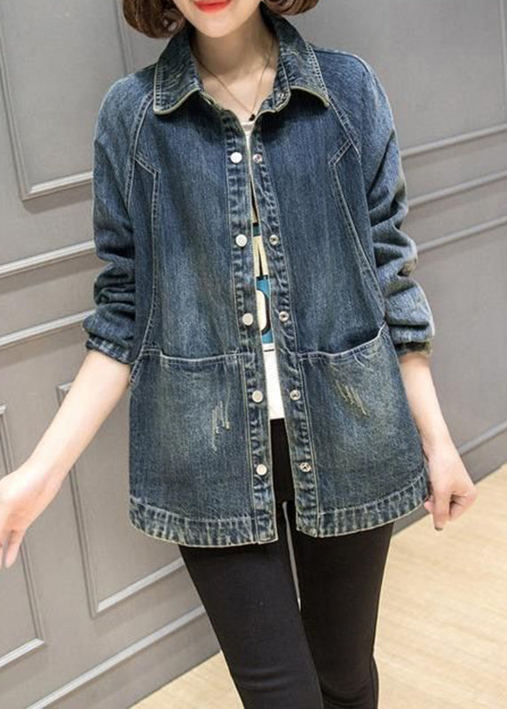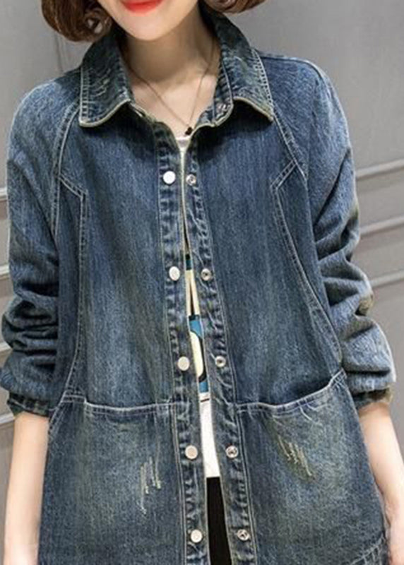 Plus Size Blue Peter Pan Collar Pockets Patchwork Denim Coats Fall