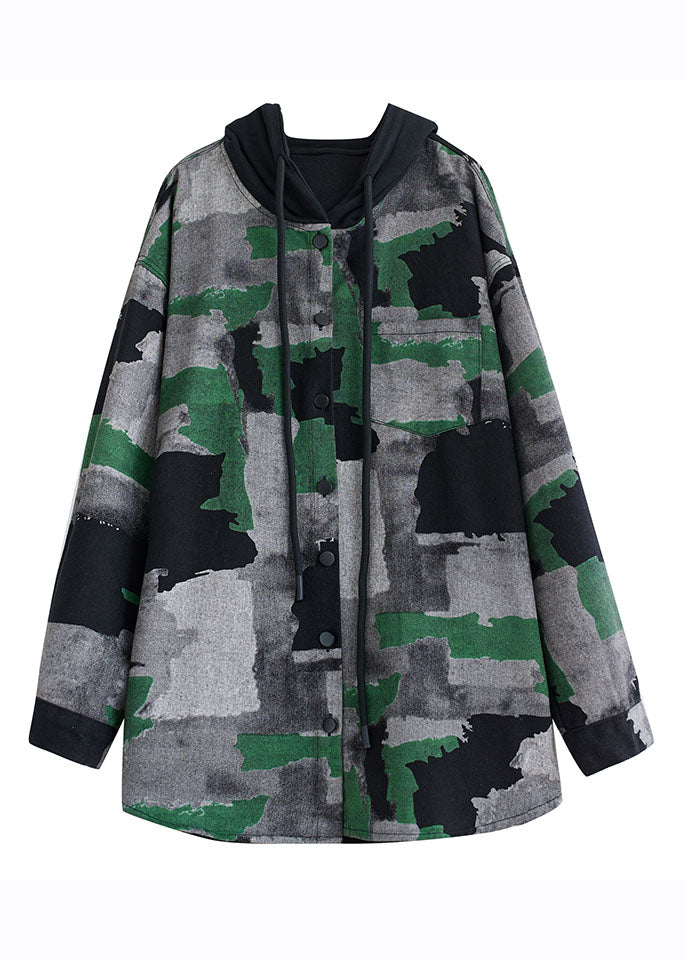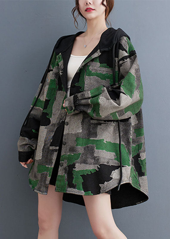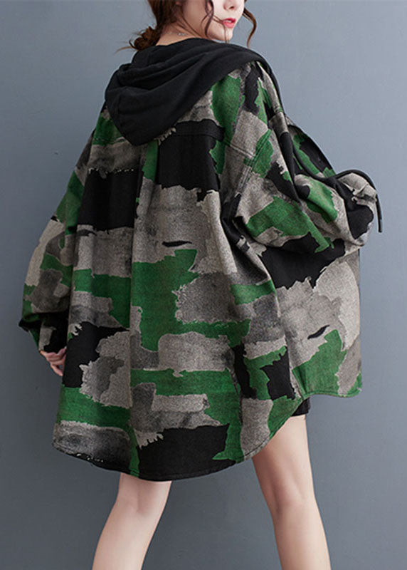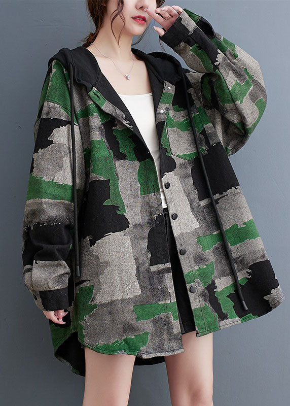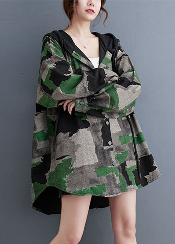 Plus Size Camouflage Print Wrinkled Hooded Coats Long Sleeve