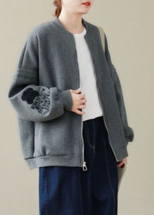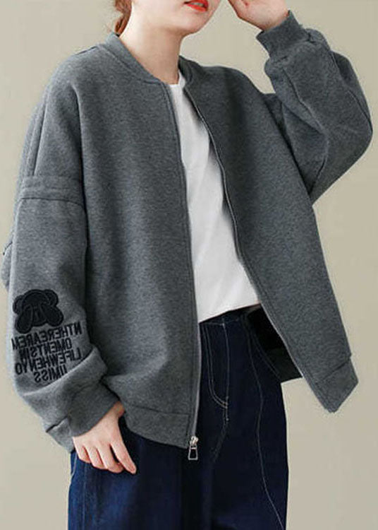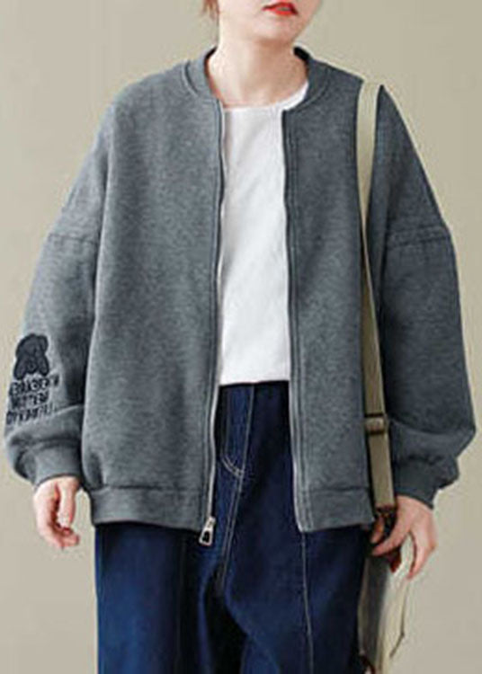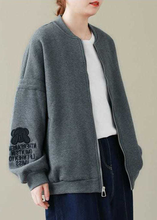 Plus Size French Grey Zip Up Loose Jacket Spring