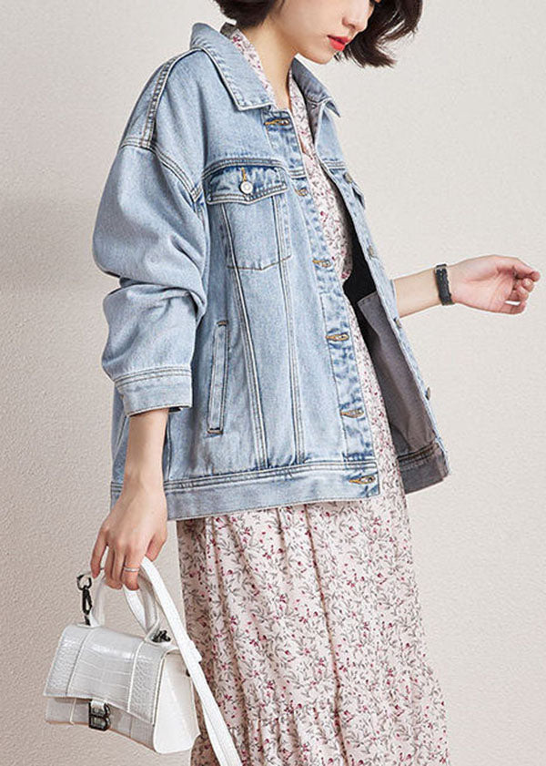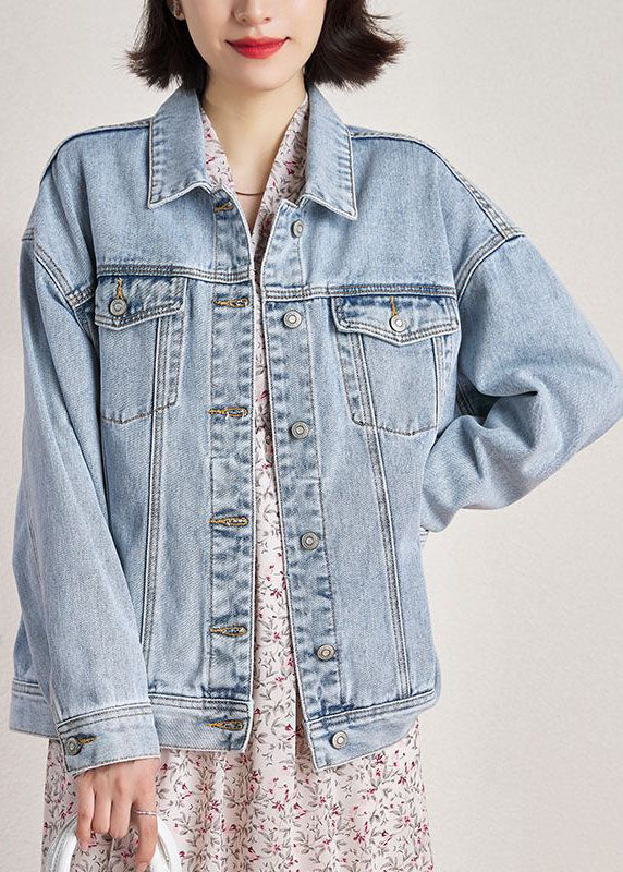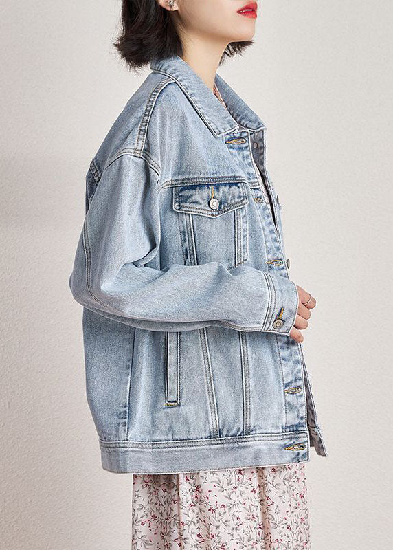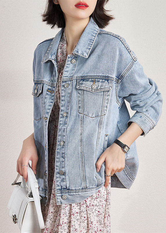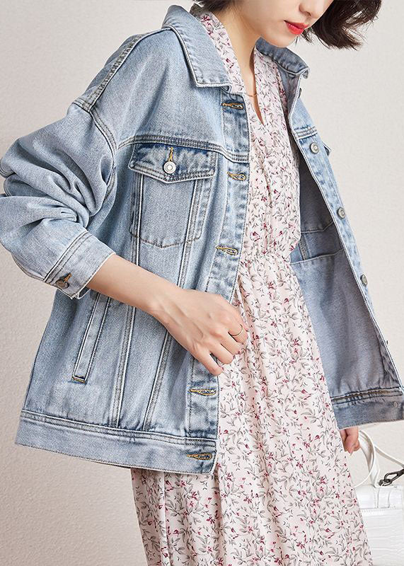 Plus Size Light Blue Peter Pan Collar Oversized Pockets Denim Coats Spring