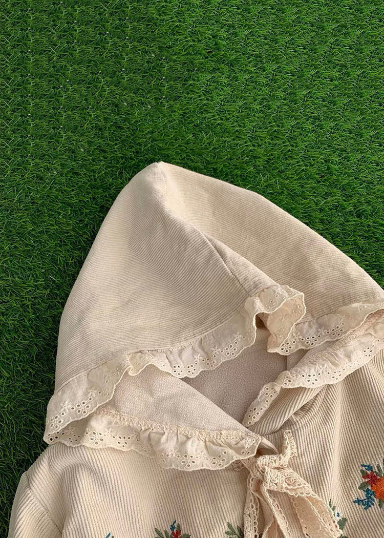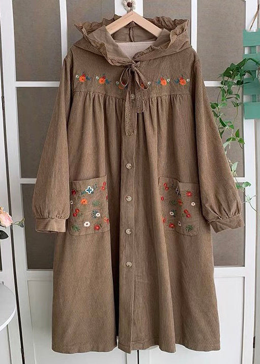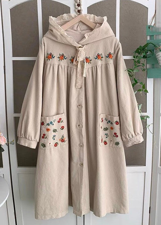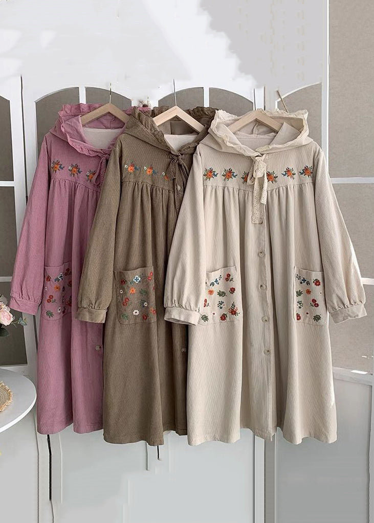 Plus Size Pink Hooded Embroideried Lace Up Cotton Long Coats Spring