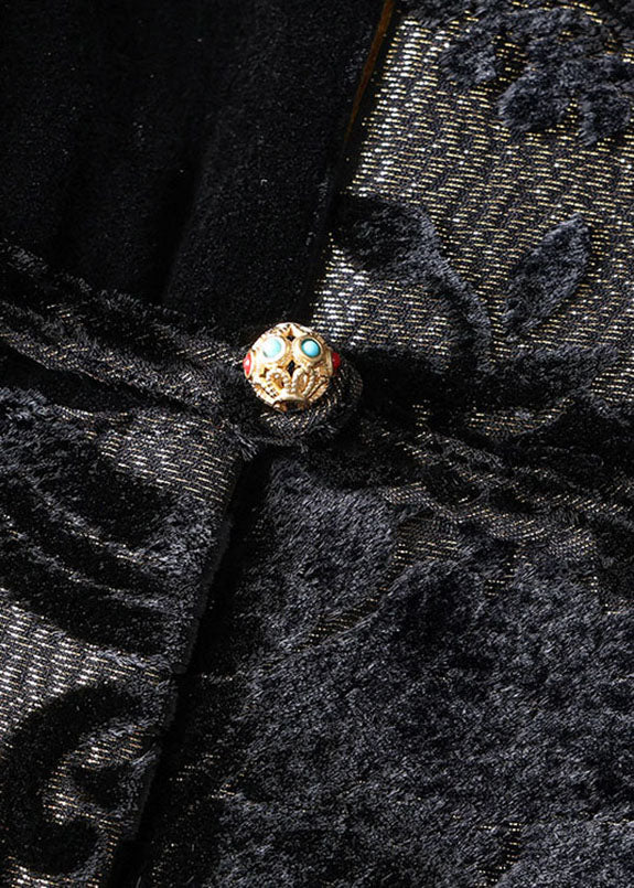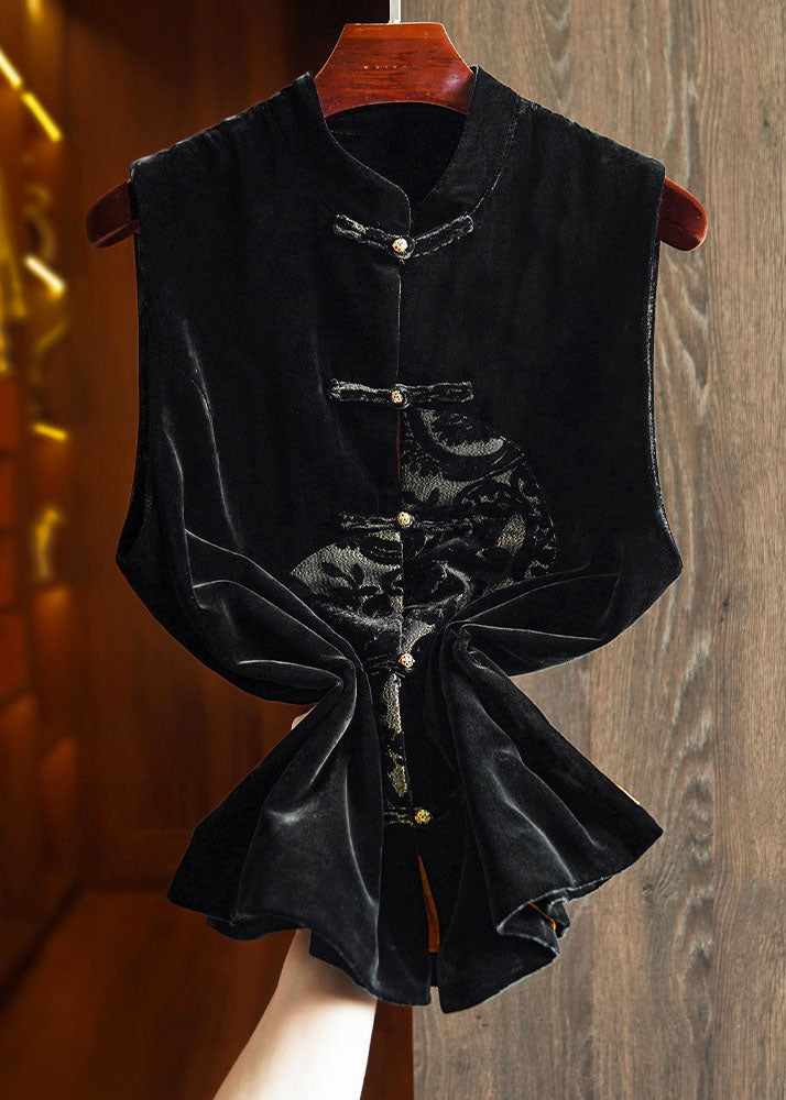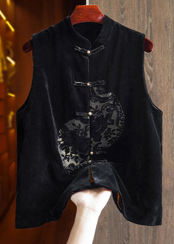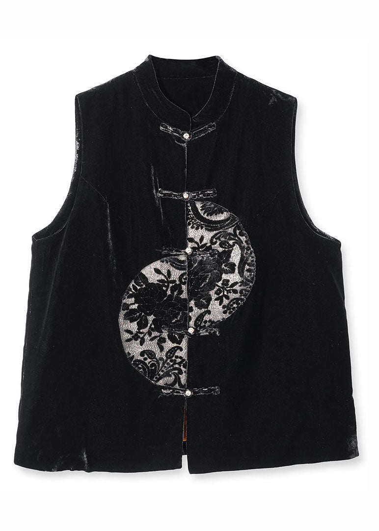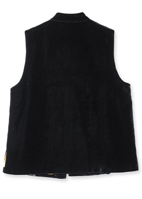 Unique Black Embroideried Patchwork Button Silk Velour Waistcoat Fall