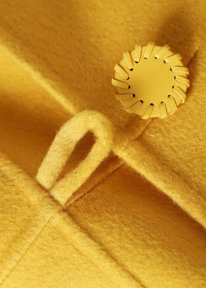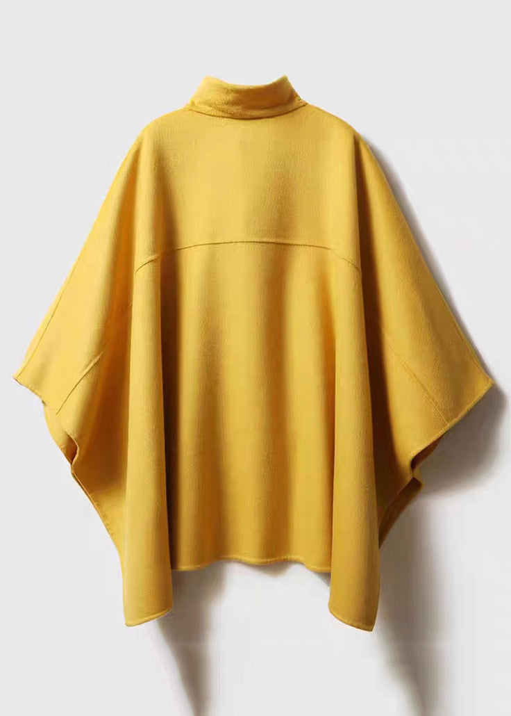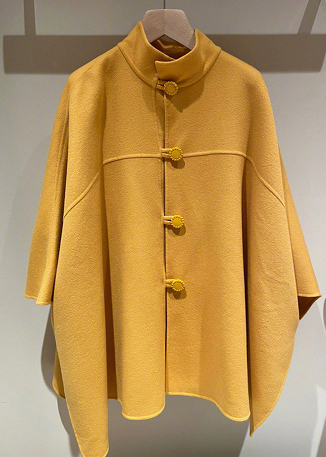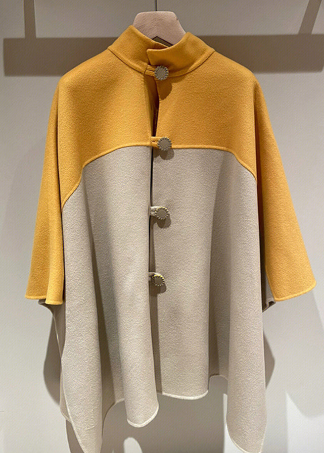 Women Yellow Stand Button Patchwork Woolen Cape Coats Fall