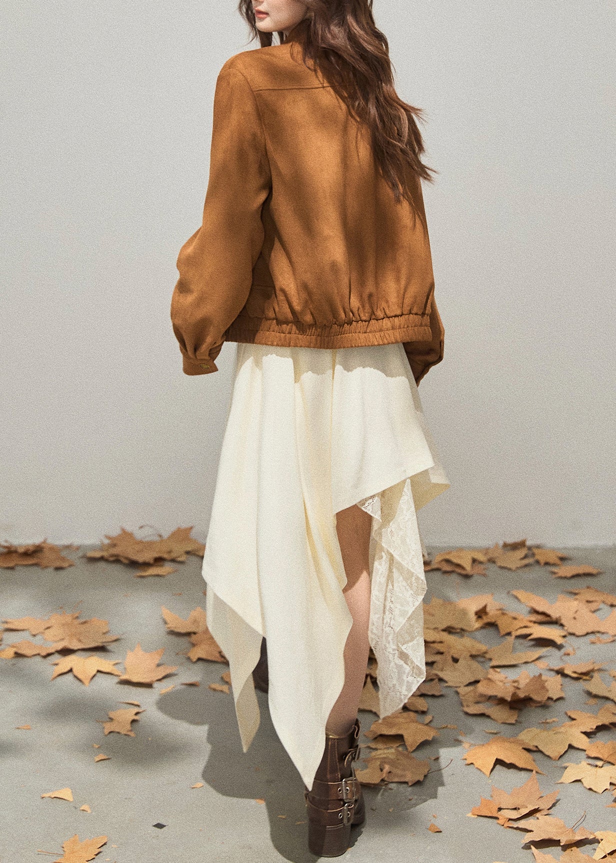 French Brown Embroidered Flower Faux Suede Coat Outwear Fall