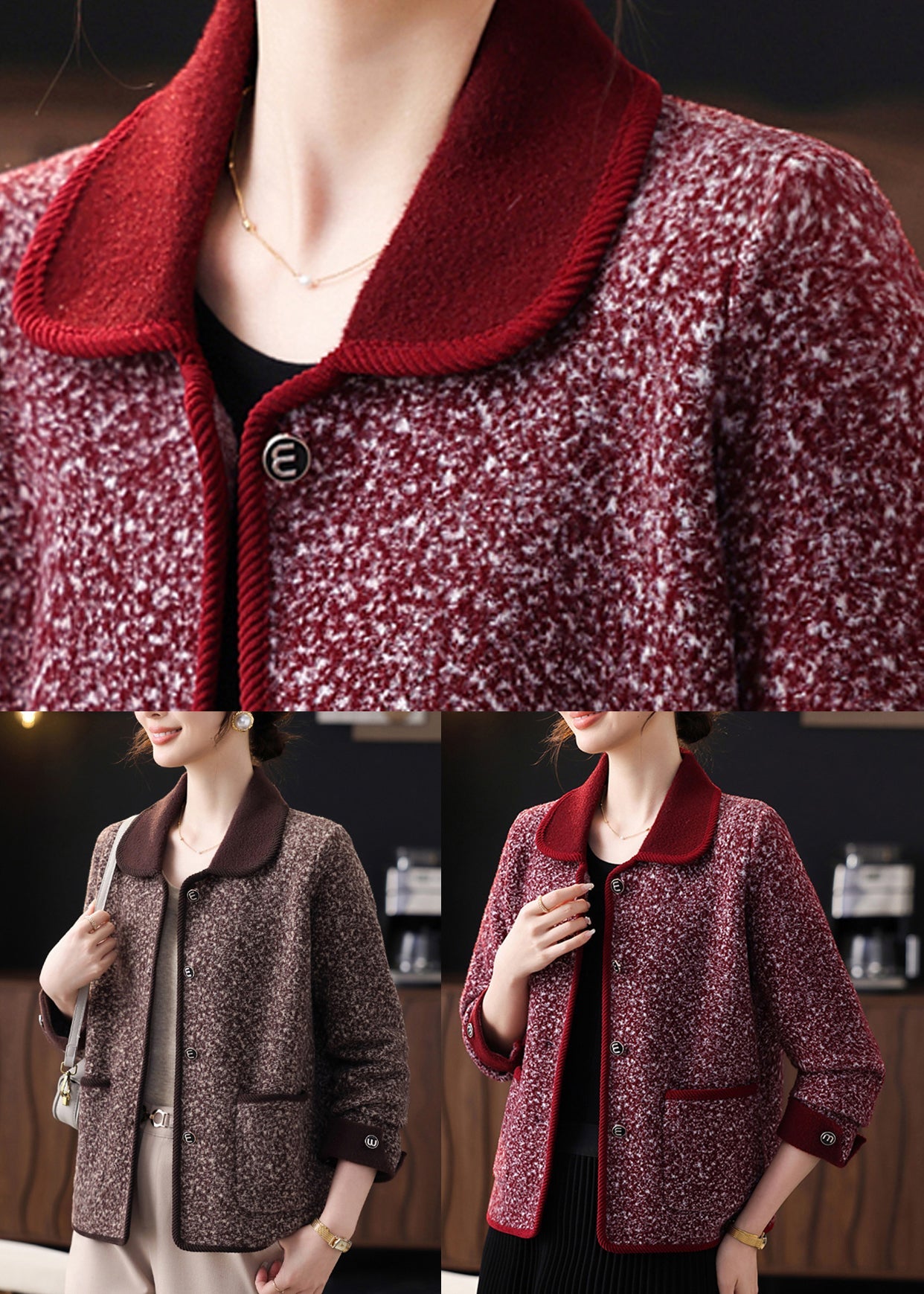 Red Cotton Knit Sweaters Peter Pan Collar Fall