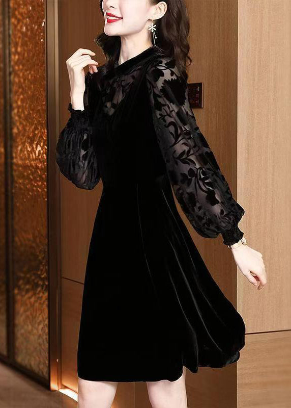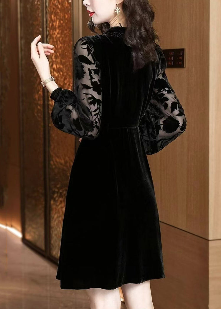 Jacquard Black High Waist Patchwork Silk Velvet Dresses Winter