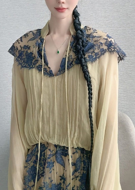 Cute Apricot Embroidered Patchwork Shirt And Skirts Two Pieces Set Fall
