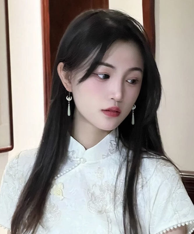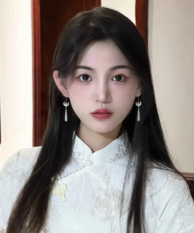 Retro Cyan Sterling Silver Alloy Jade Moon Drop Earrings