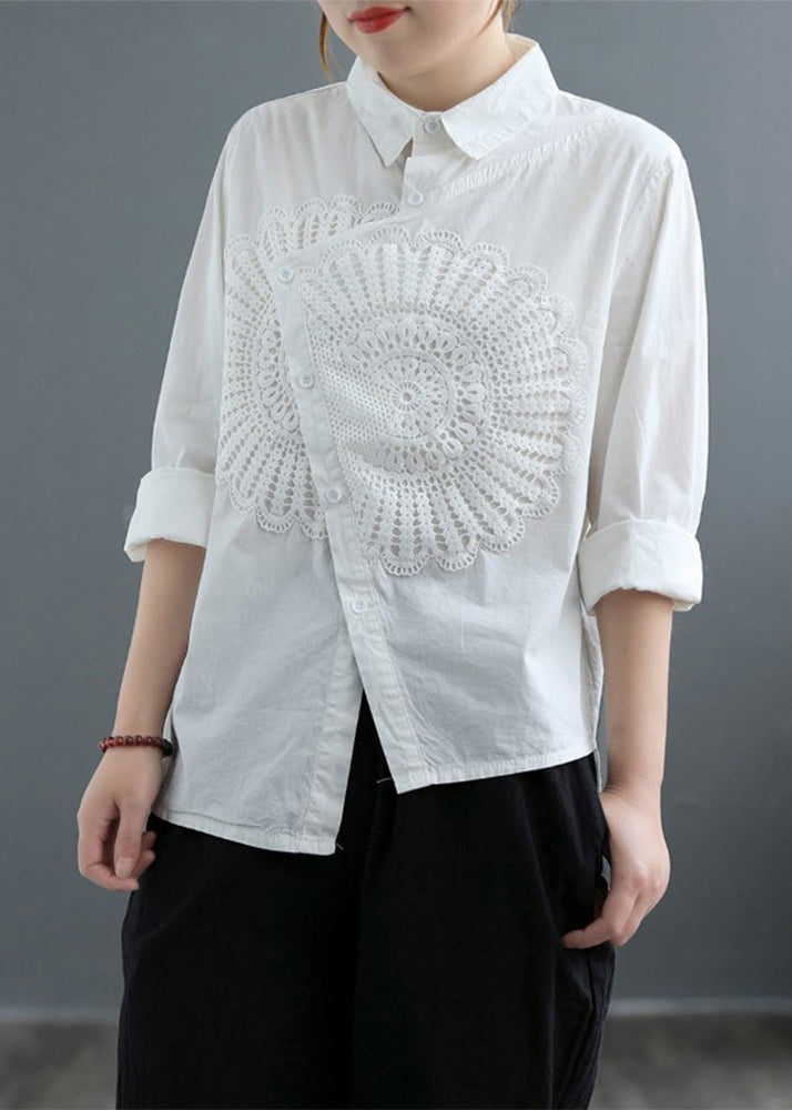 Classy White Asymmetrical Patchwork Lace Shirt Spring