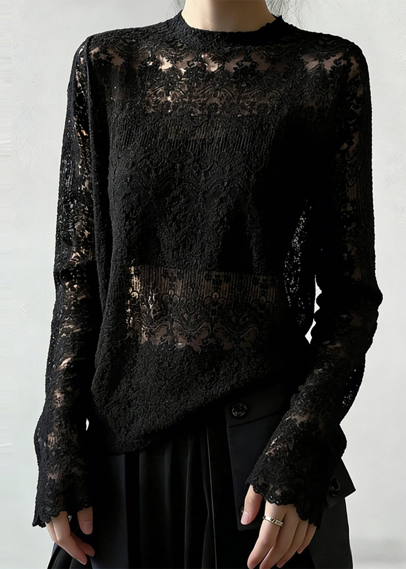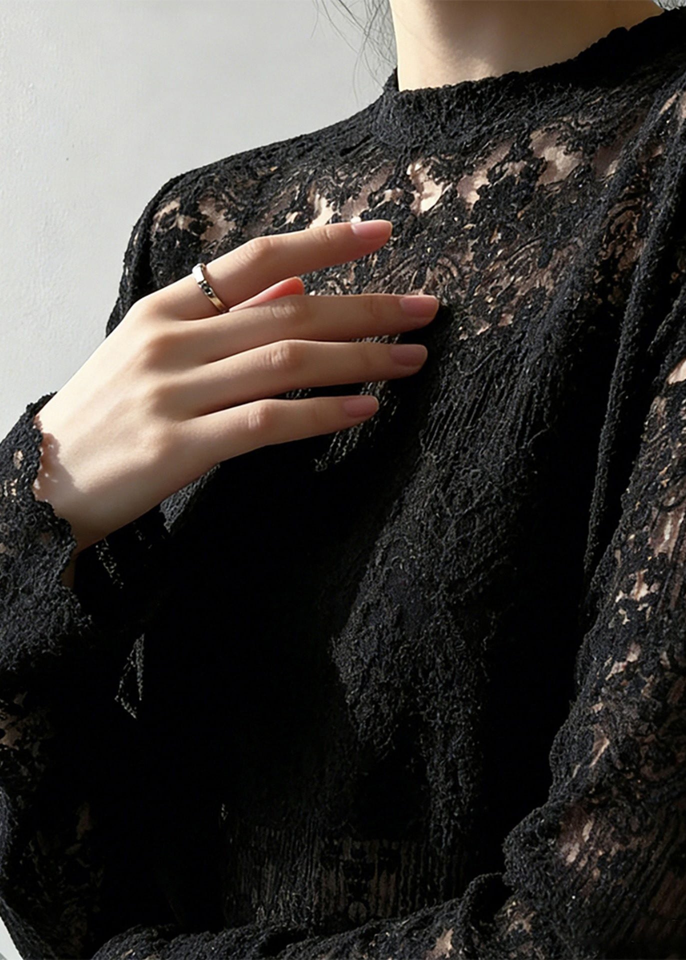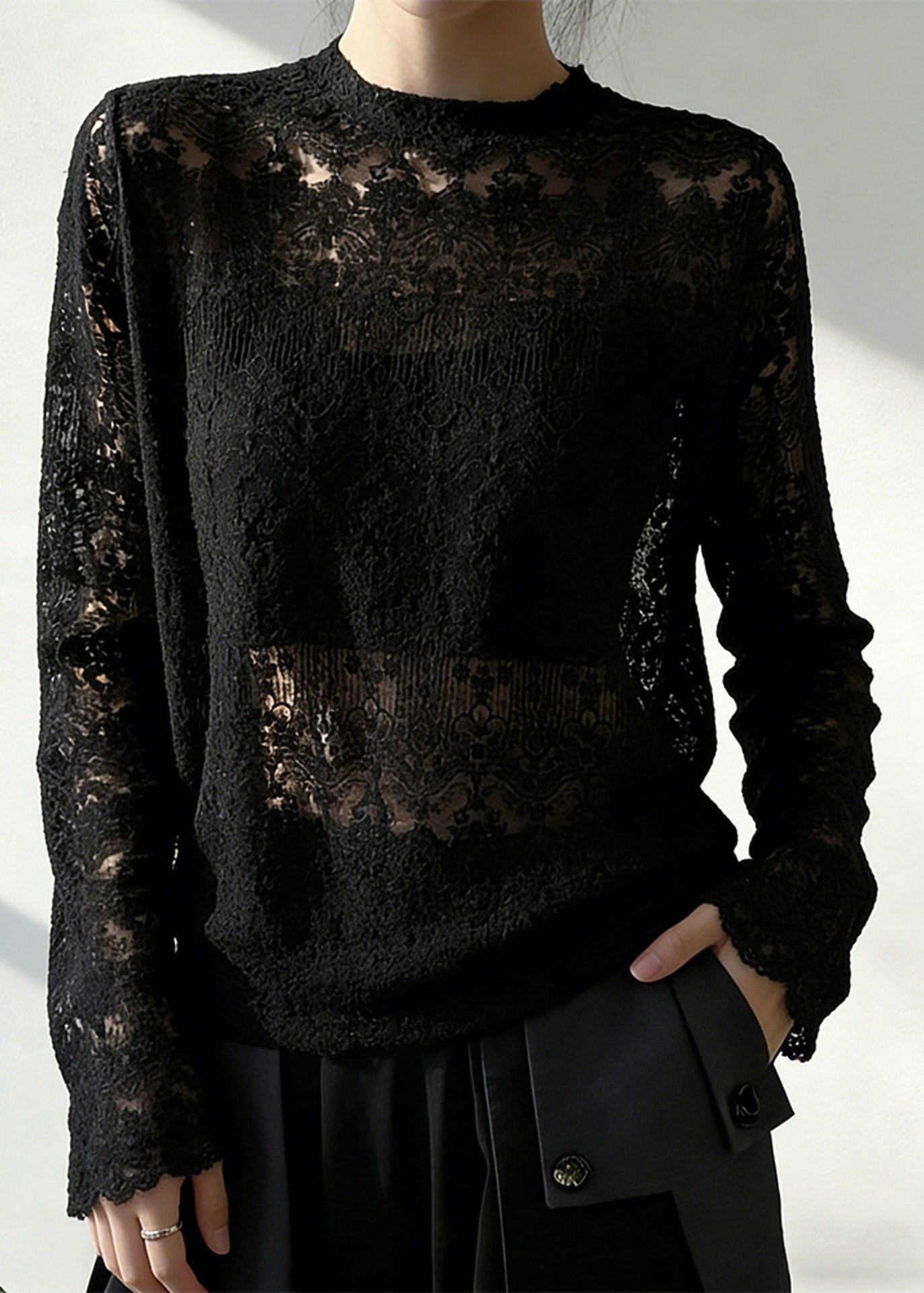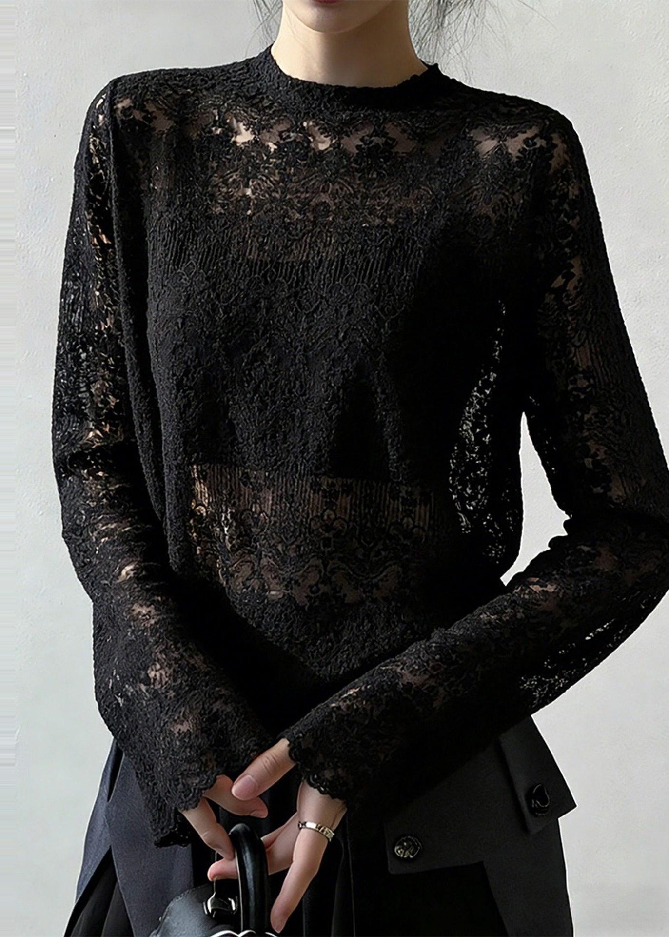 Boho Black Jacquard Hollow Out Lace Top Spring
