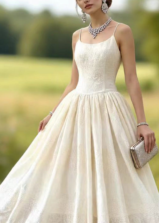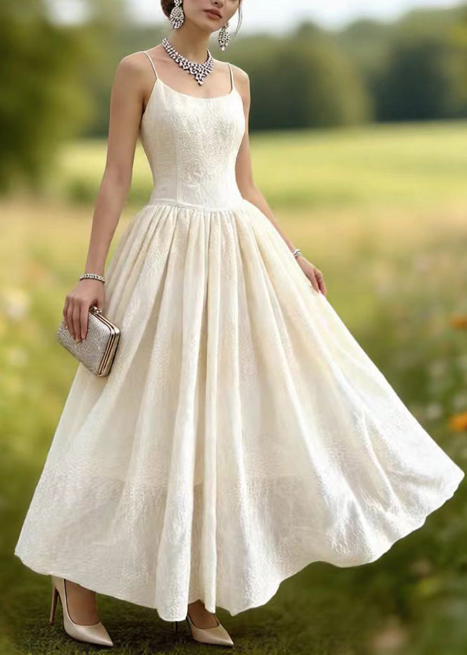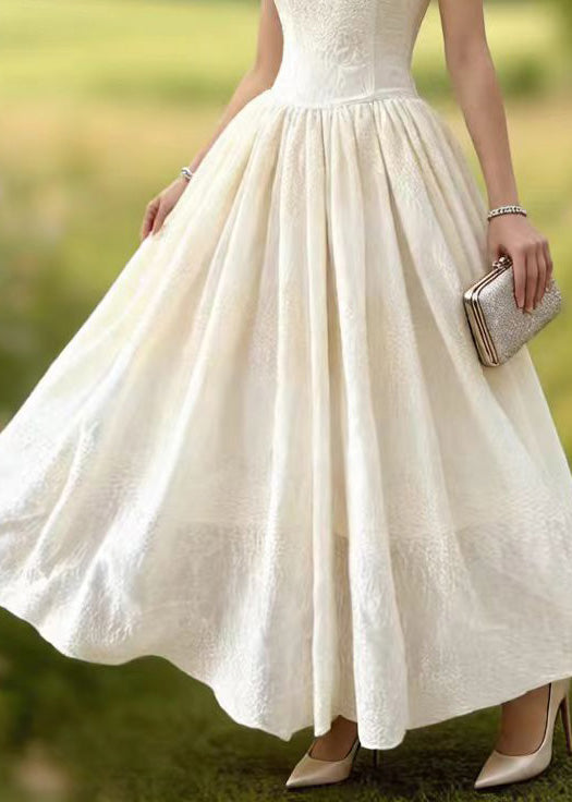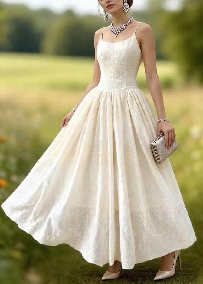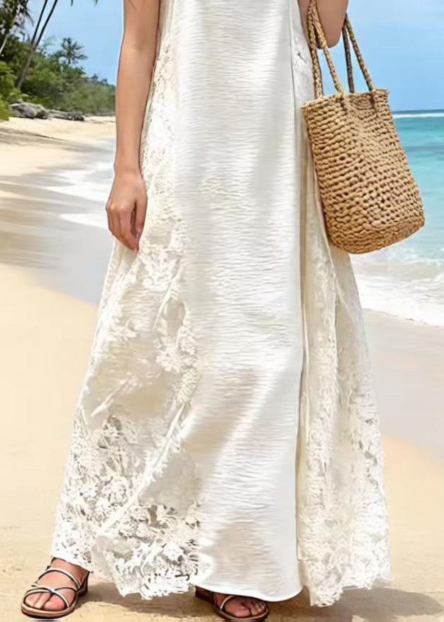 French White Ruffled Patchwork Lace Long Dress Spring