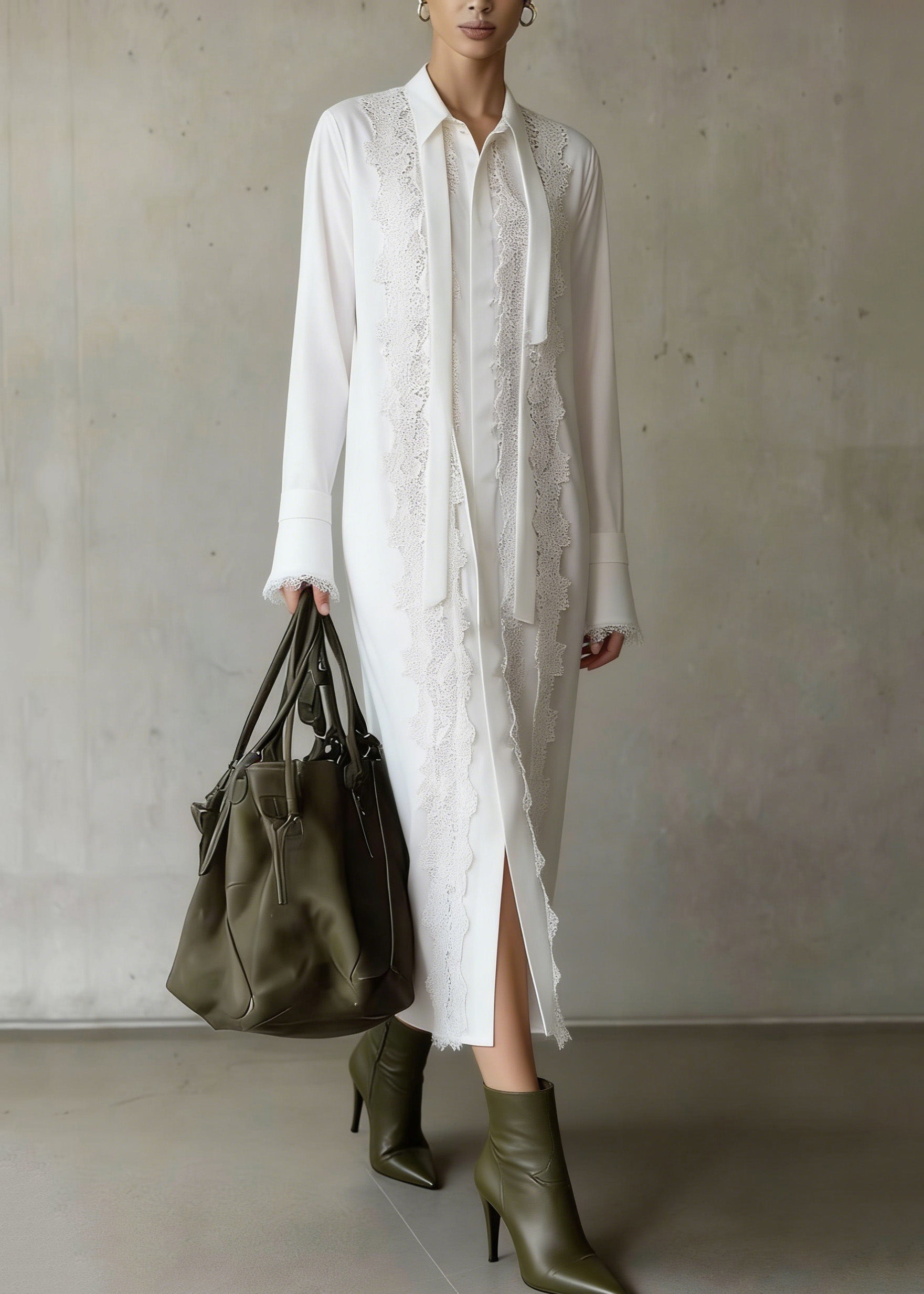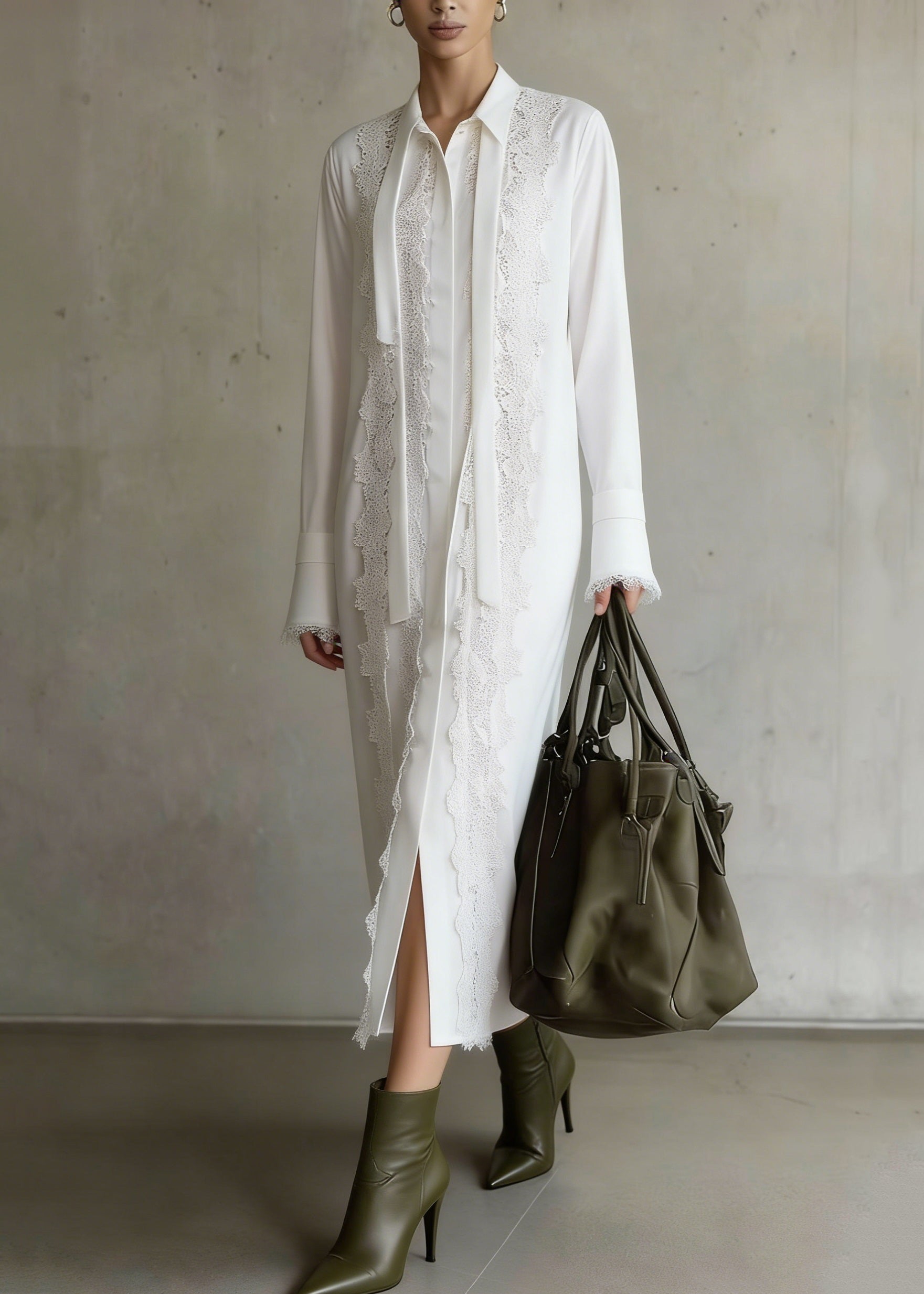 Boutique White Lace Patchwork Chiffon Shirts Dress Spring