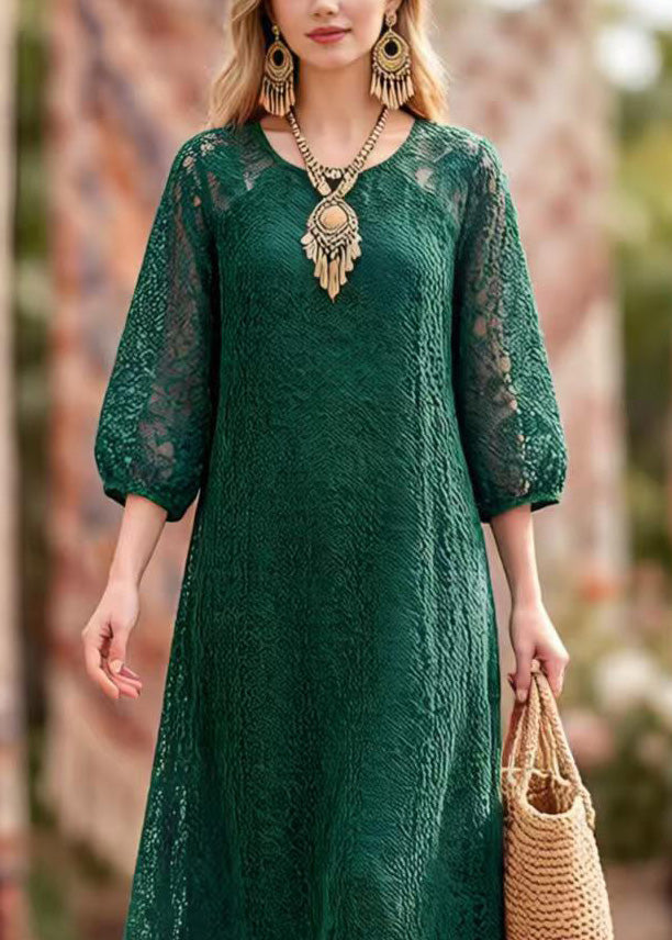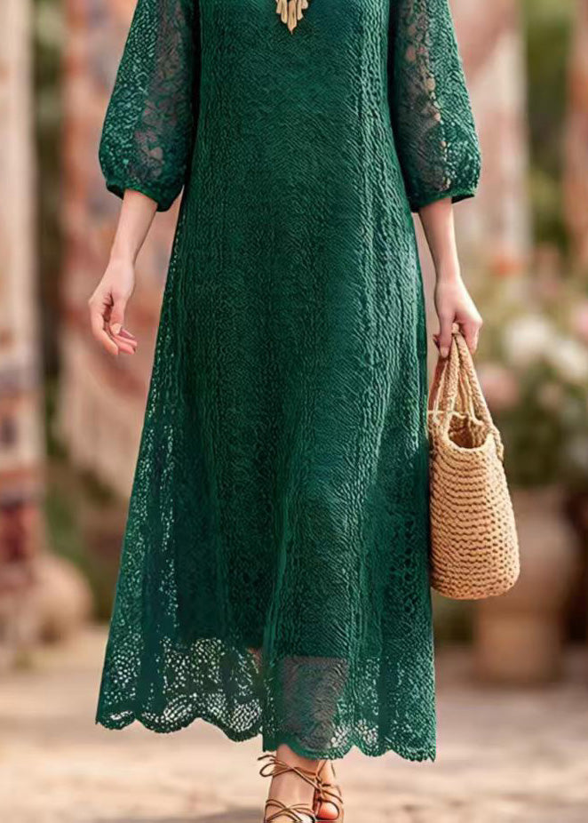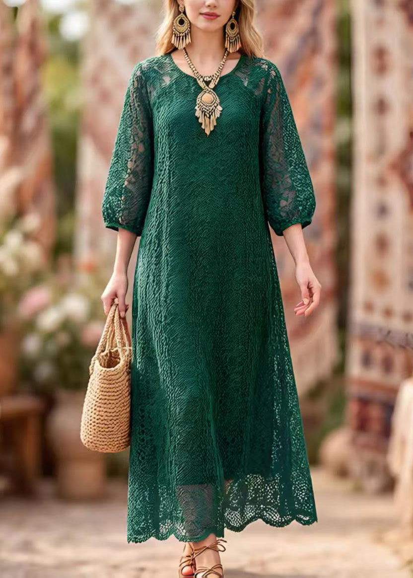 Elegant Blackish Green O Neck Hollow Out Lace Dresses Summer