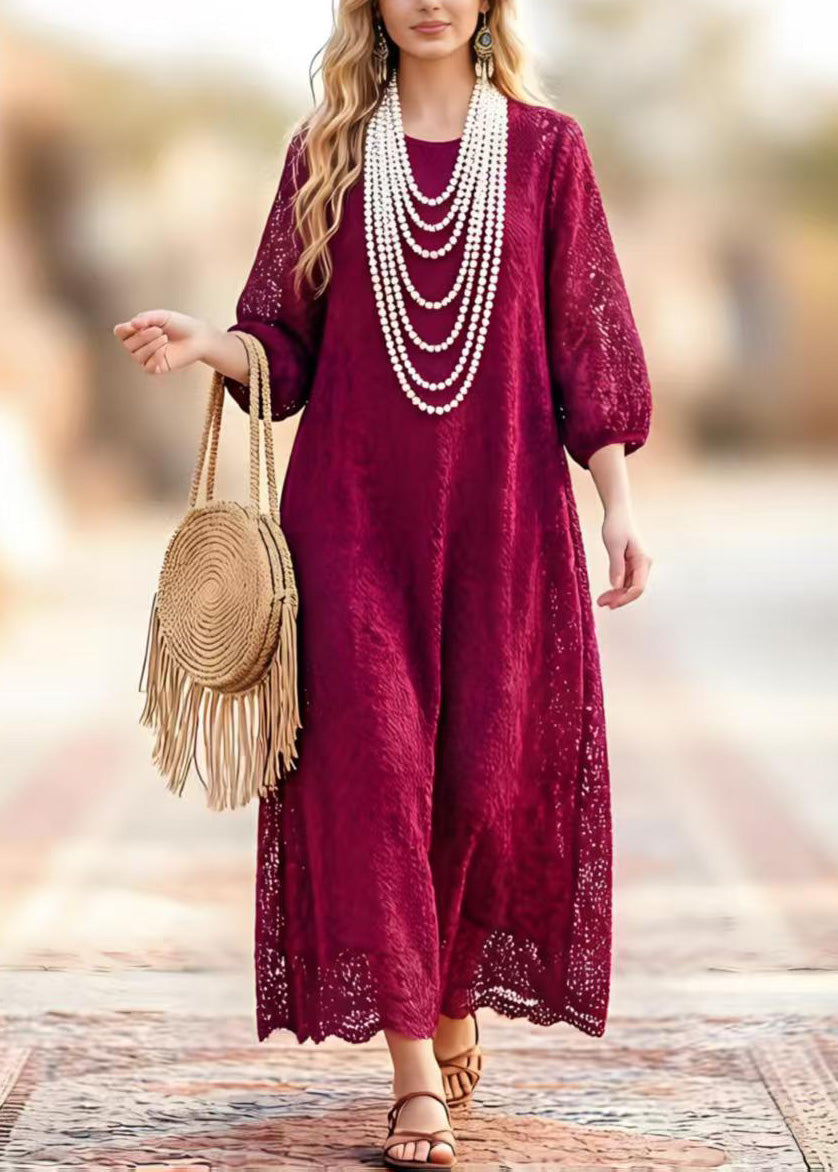 Plus Size Rose O Neck Lace Long Dress Summer