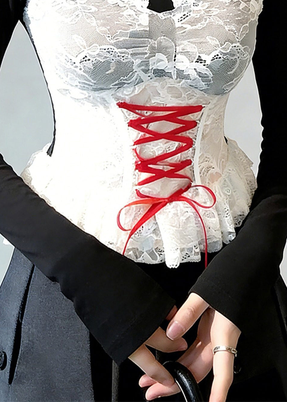 Sexy Coffee Ruffled Lace Up Patchwork Lace T Shirt Tops Spring