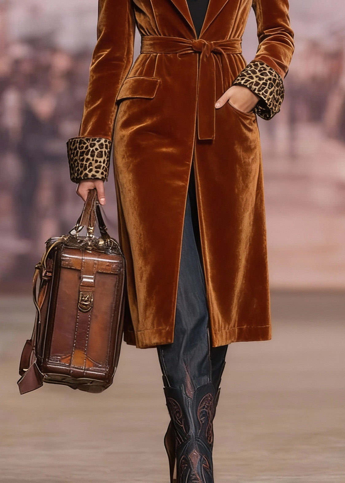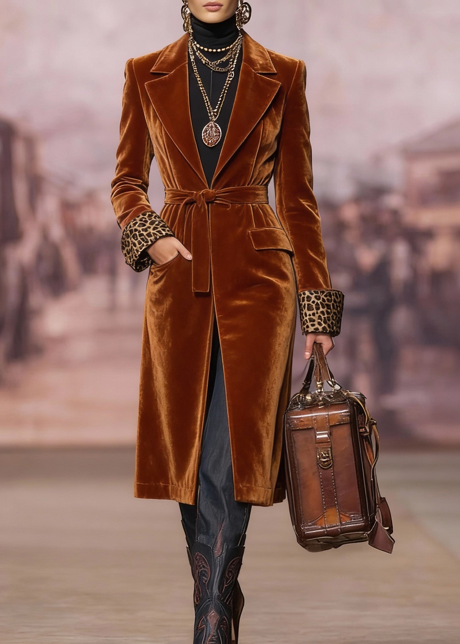 Women Brown Peter Pan Collar Lace Up Velvet Coat Spring