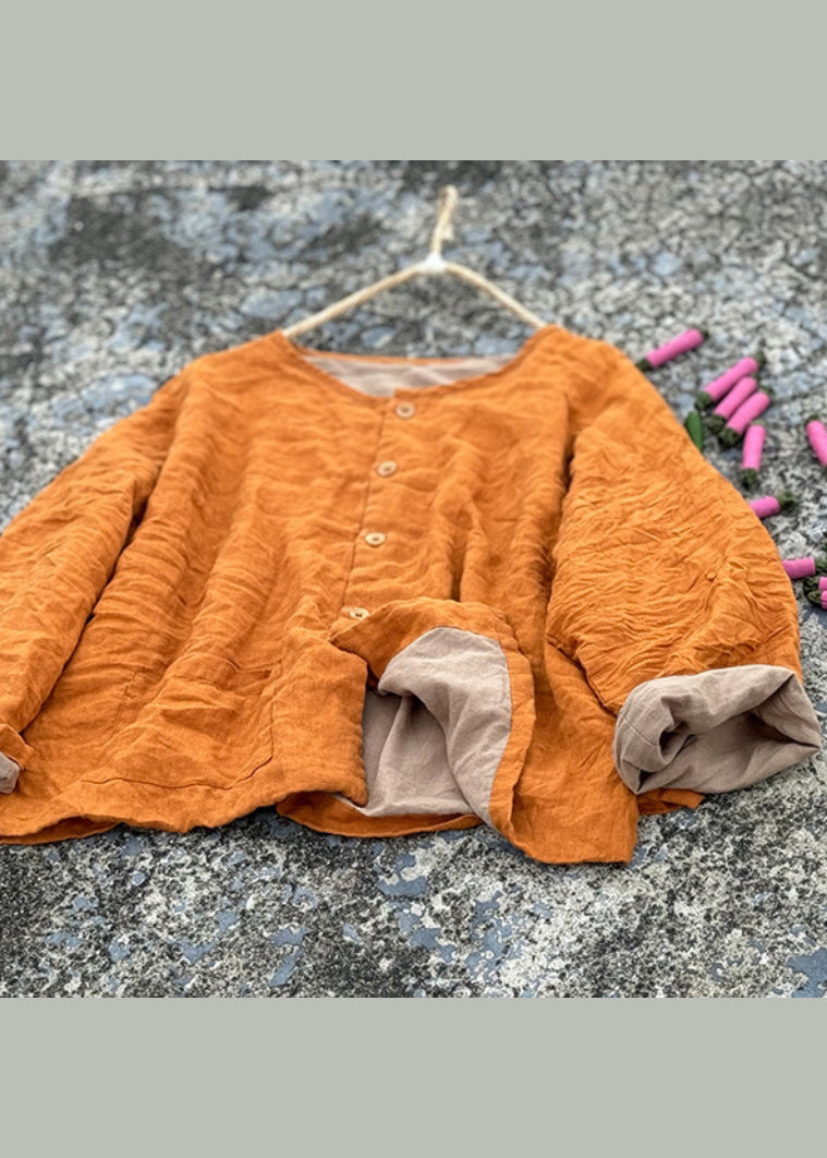 Loose Green O Neck Button Pockets Linen Coats Fall