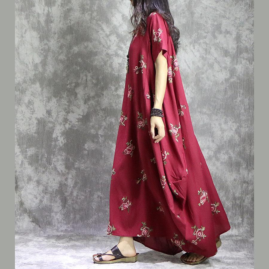 Loose o neck prints linen Robes stylish Work Outfits red loose Dress summer - Omychic