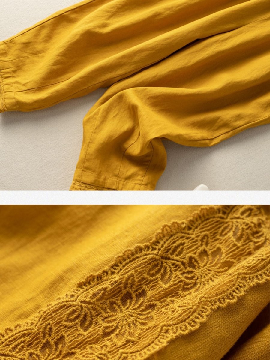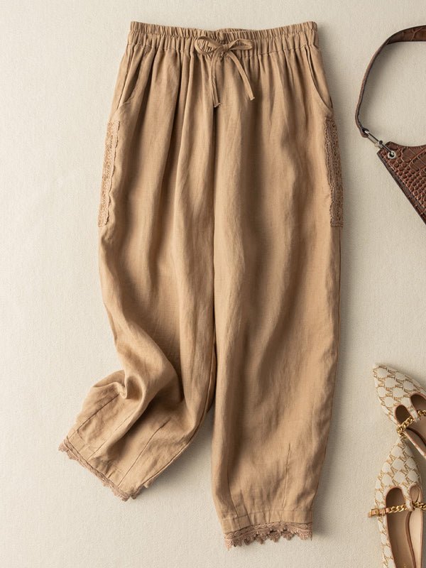 Women's Linen Lace Stitching Casual Haren Pants