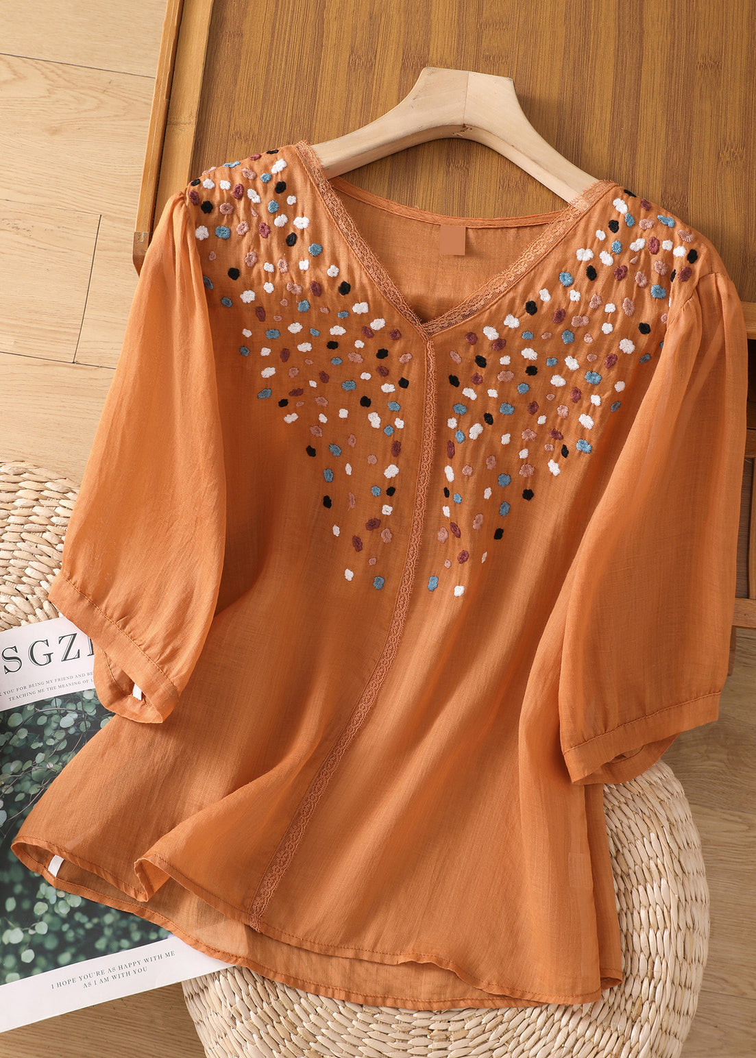 Handmade Yellow Embroidered Linen Loose Shirt Summer