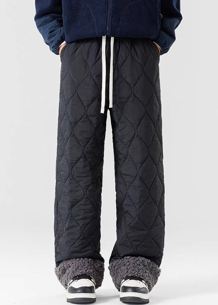 Loose Light Green Original Design Elastic Waist Patchwork Warm Fleece Pants Winter