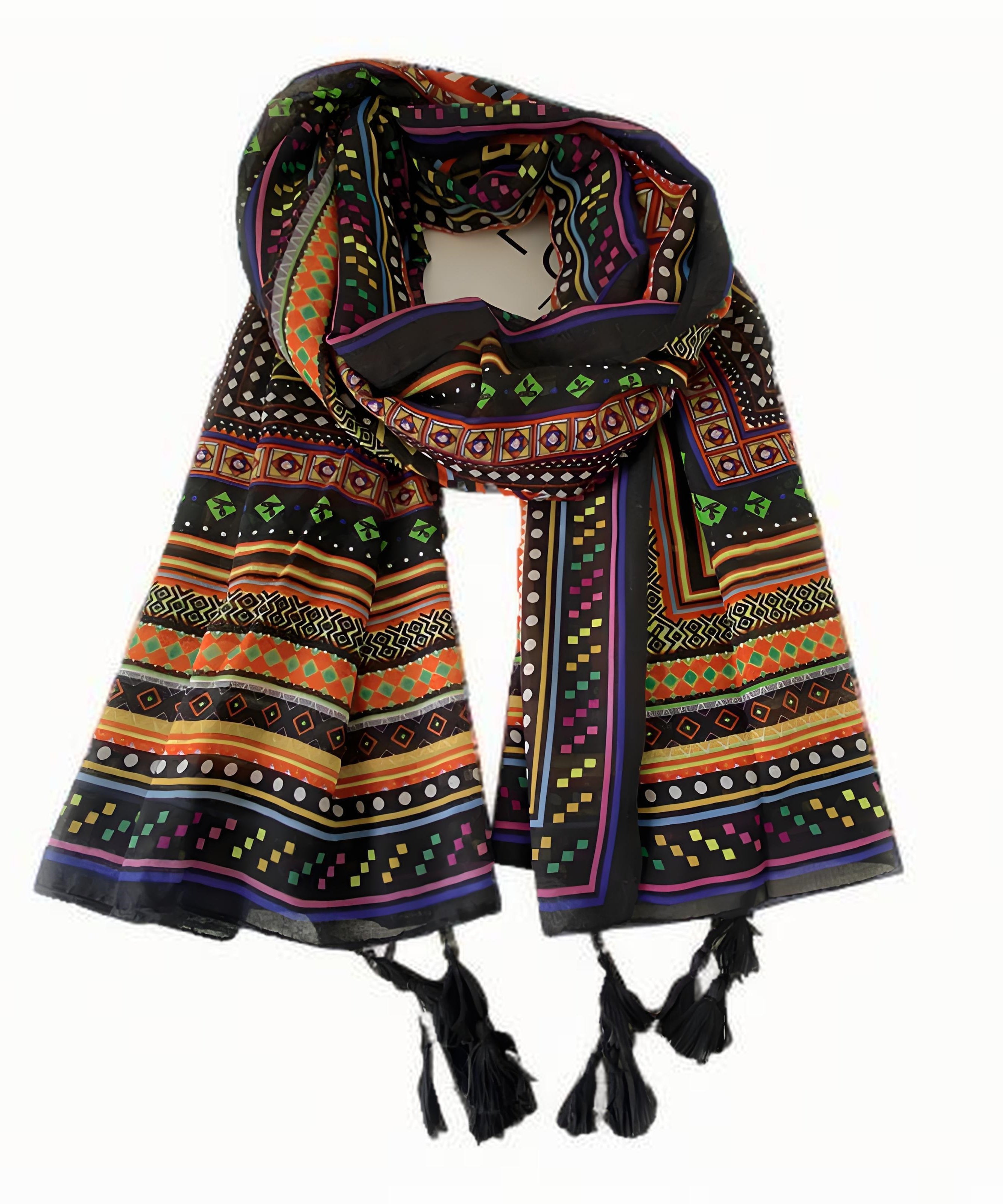 Casual Black Oversized Scarf Cotton Blouse Top Fall
