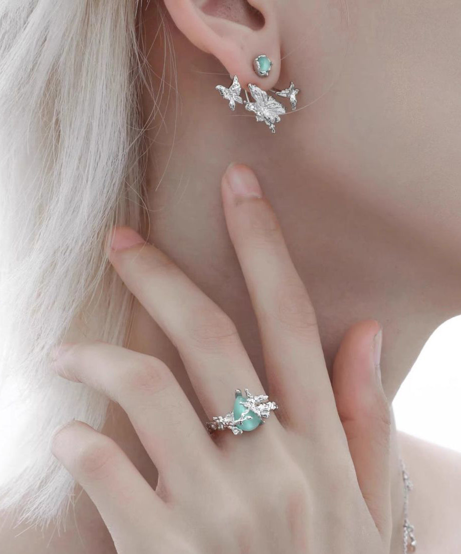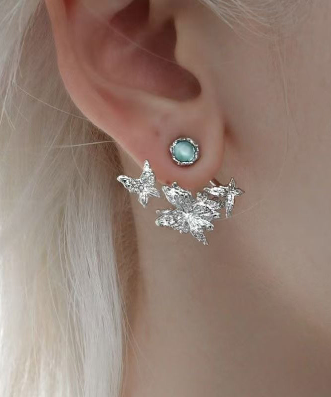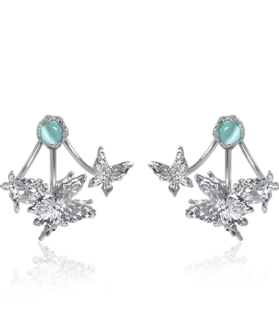 Art Silk Copper Cat's Eye Stone Butterfly Detachable Stud Earrings