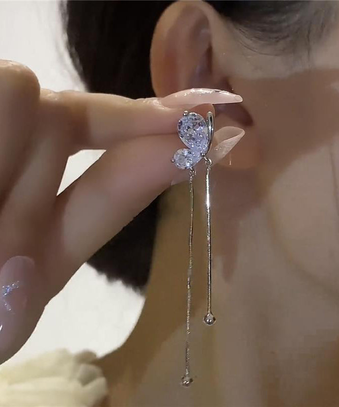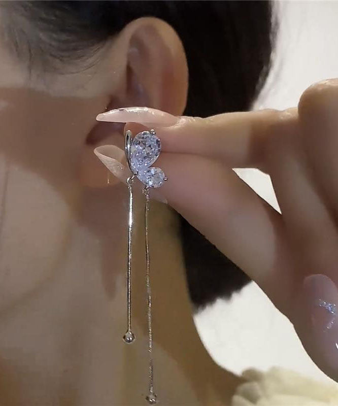 Beautiful Silk Copper Zircon Butterfly Tassel Drop Earrings