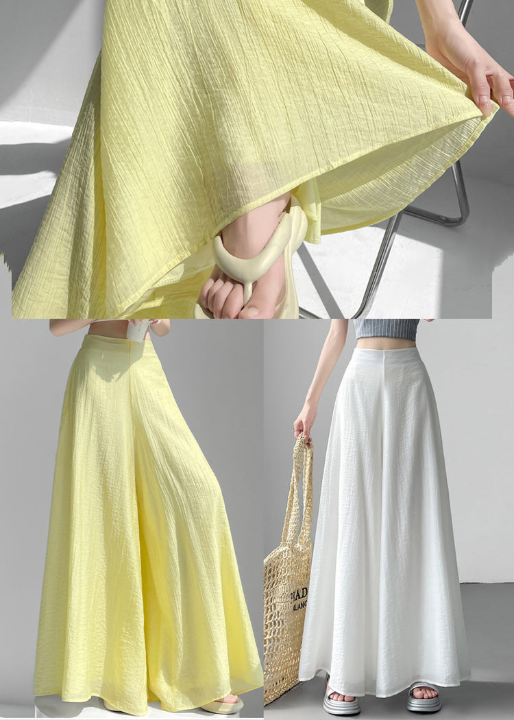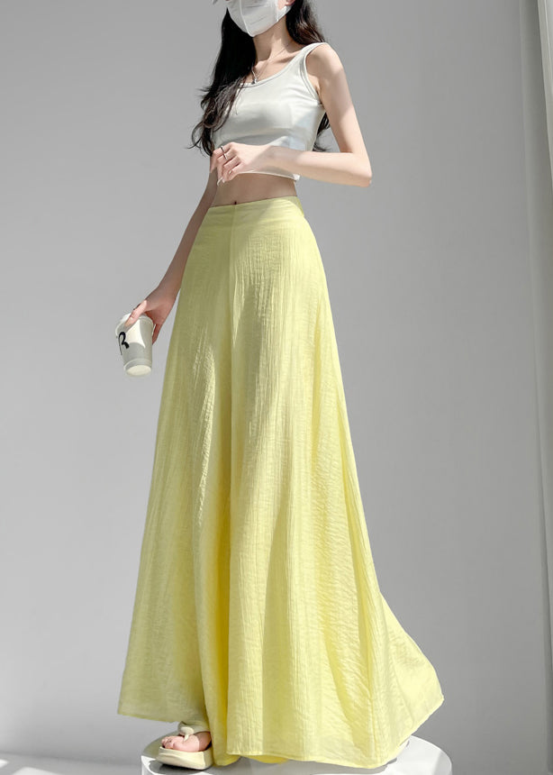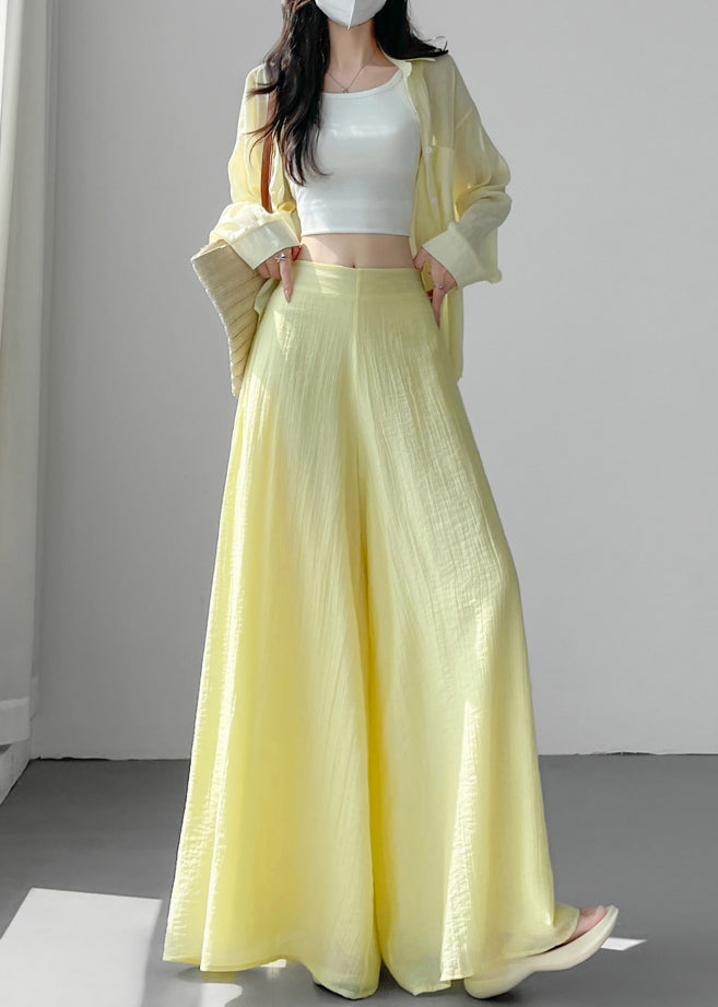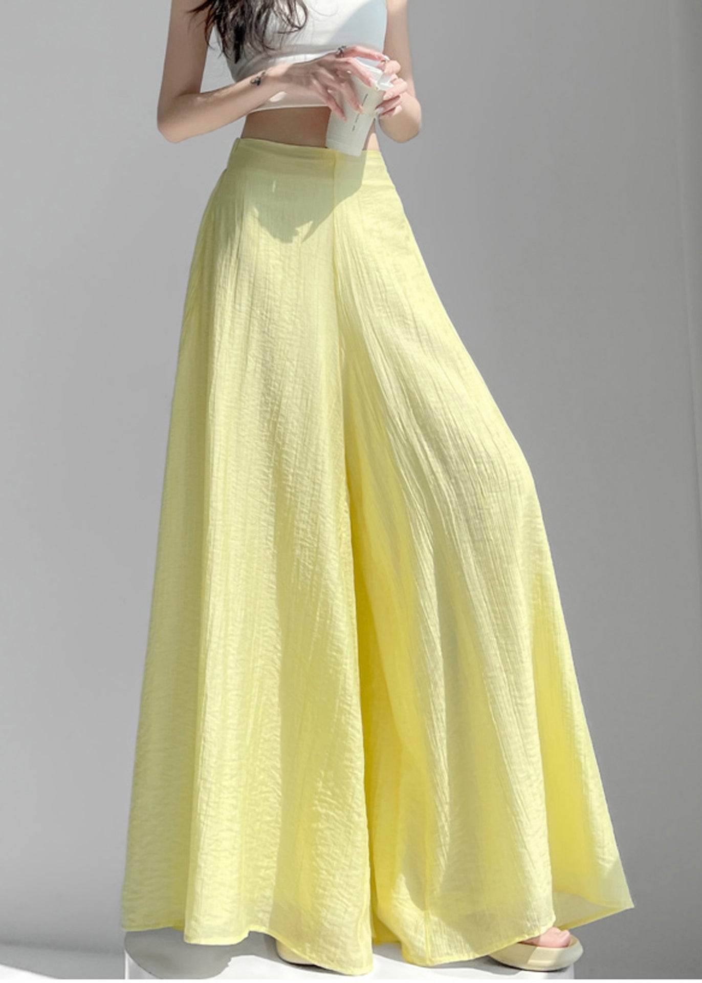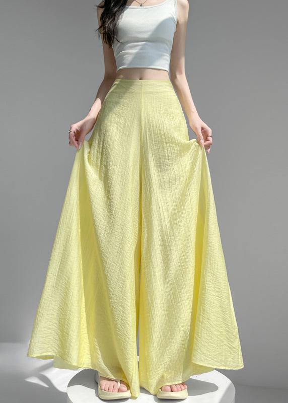 Bohemian Yellow High Waist Linen Silk Wide Leg Pants Summer