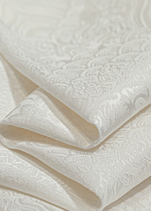 Jacquard Beige O Neck Button Patchwork Silk Shirt Summer
