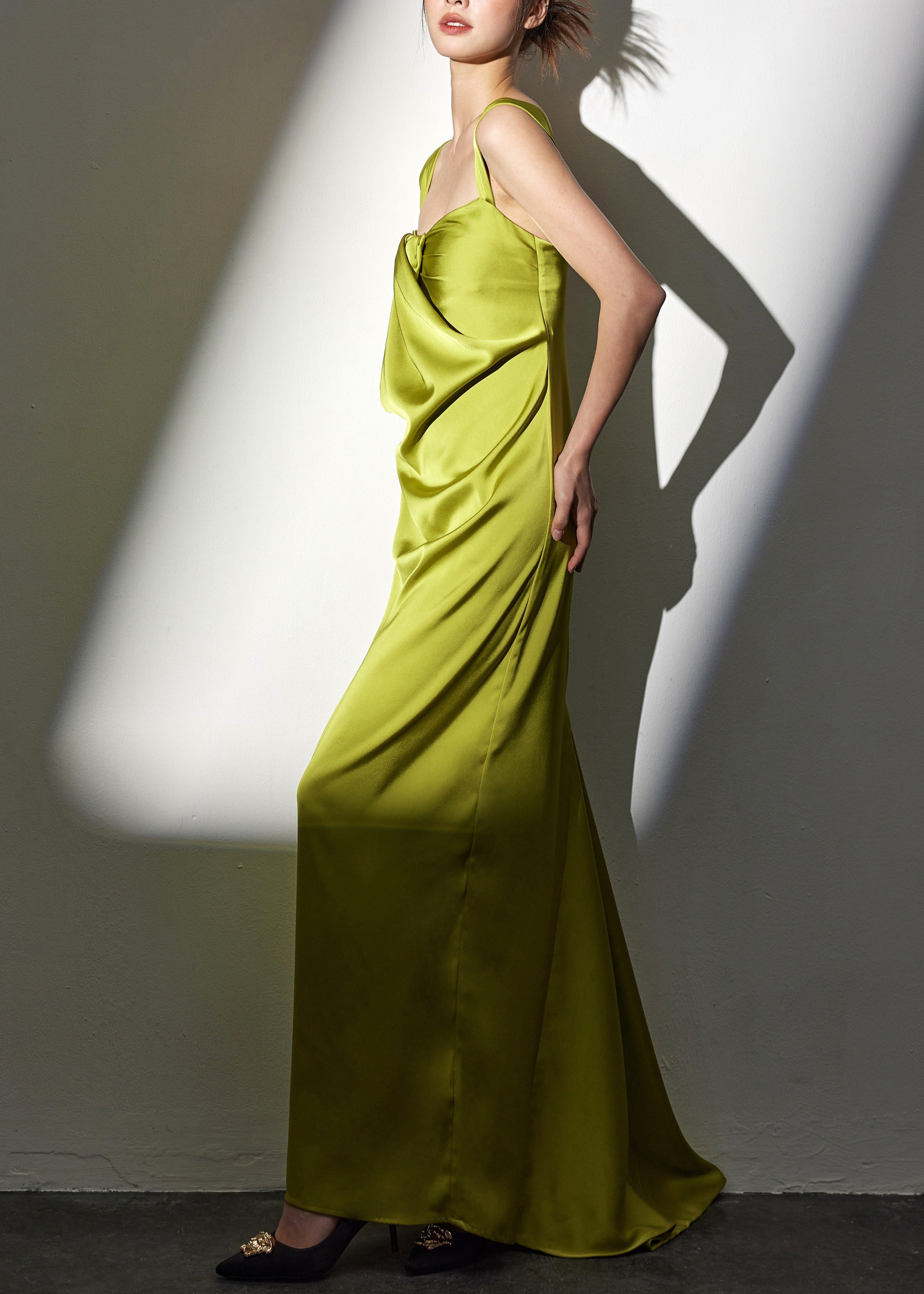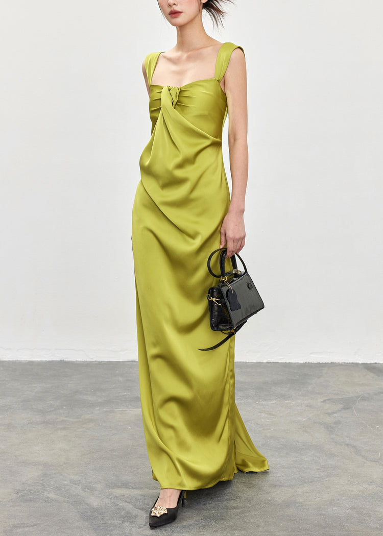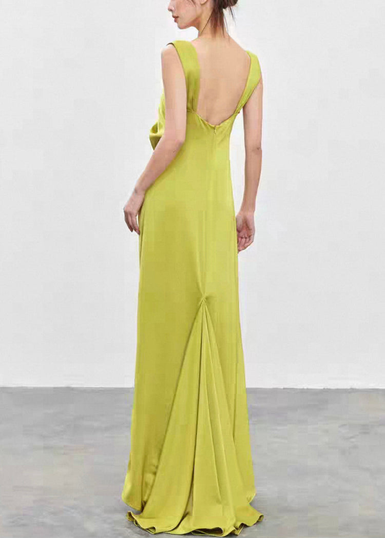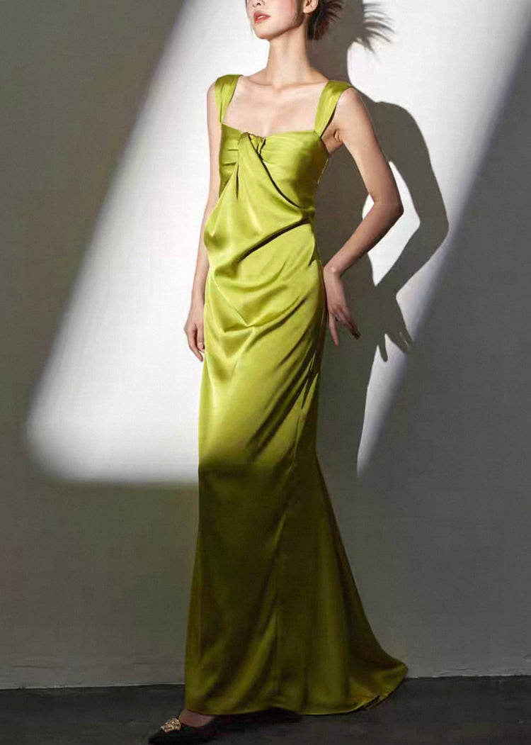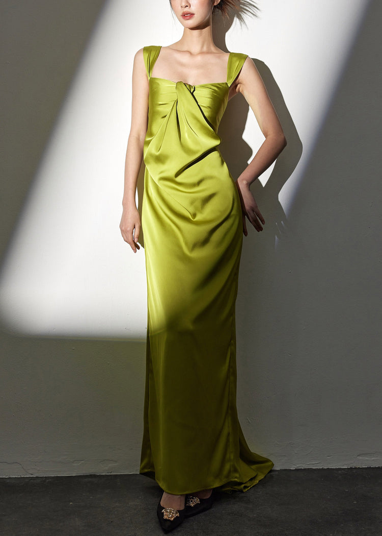 Novelty Green Square Collar Backless Silk Long Dresses Sleeveless