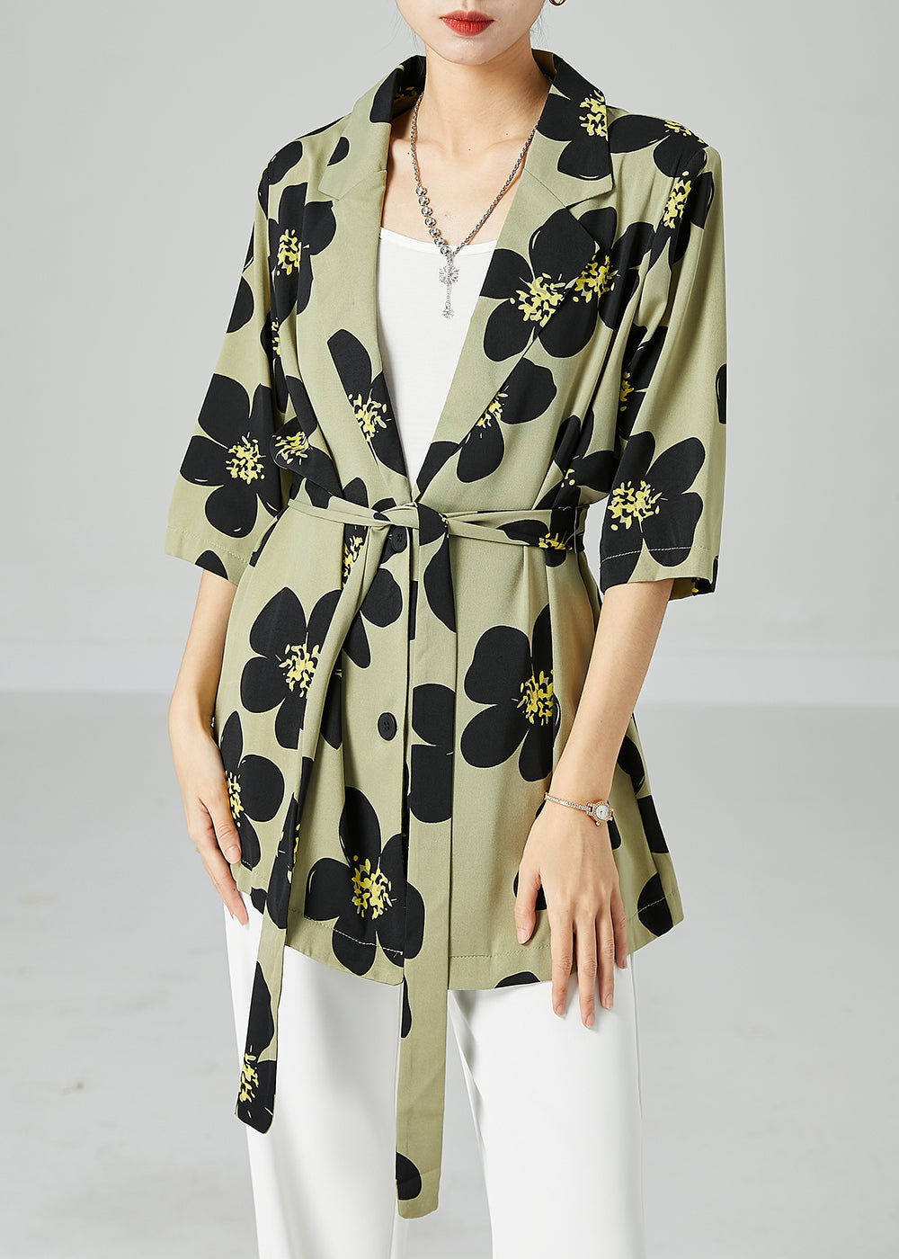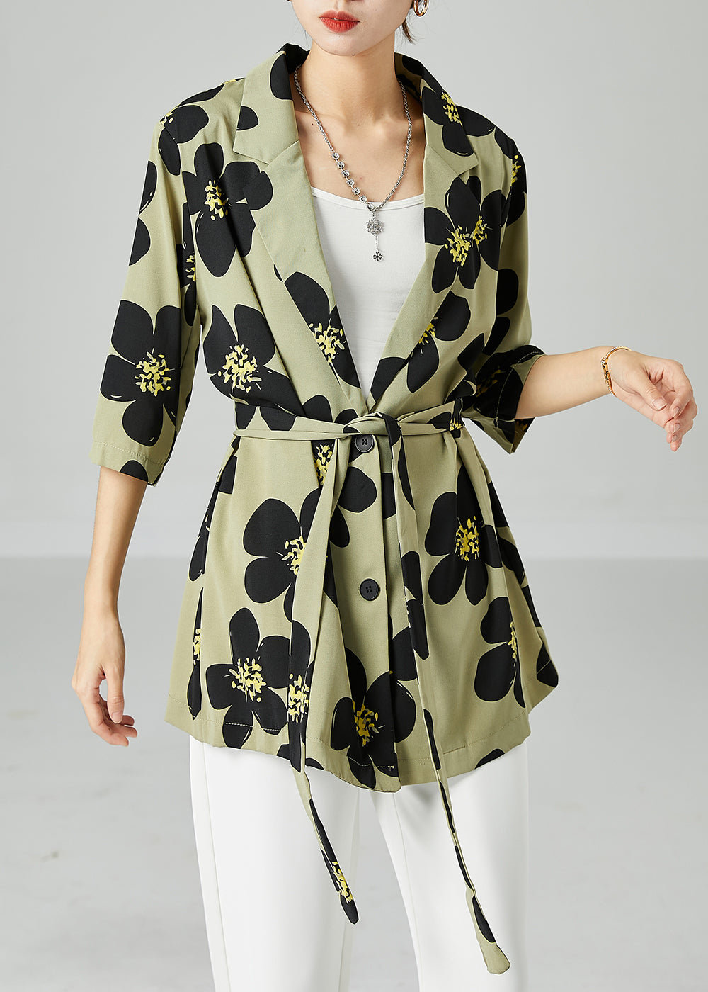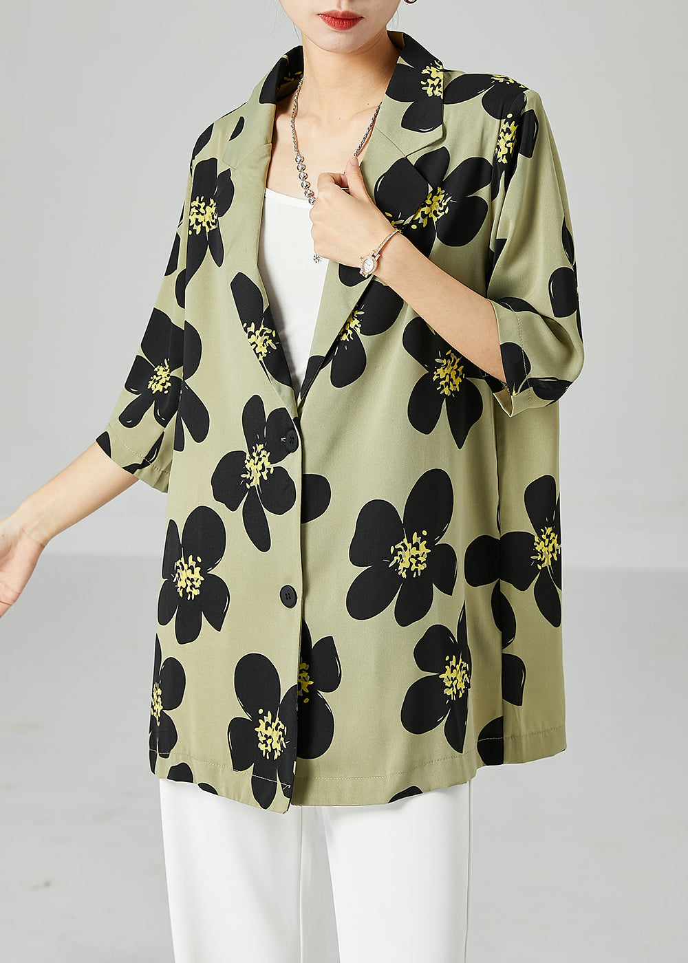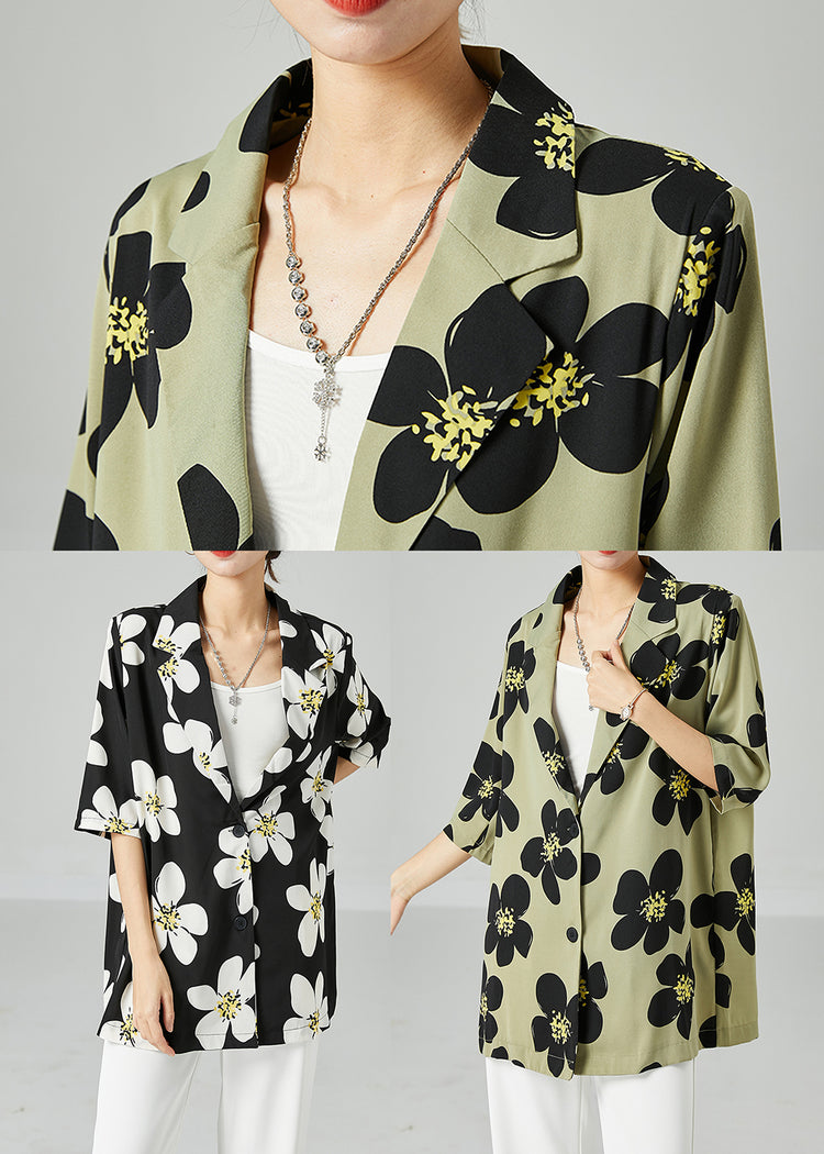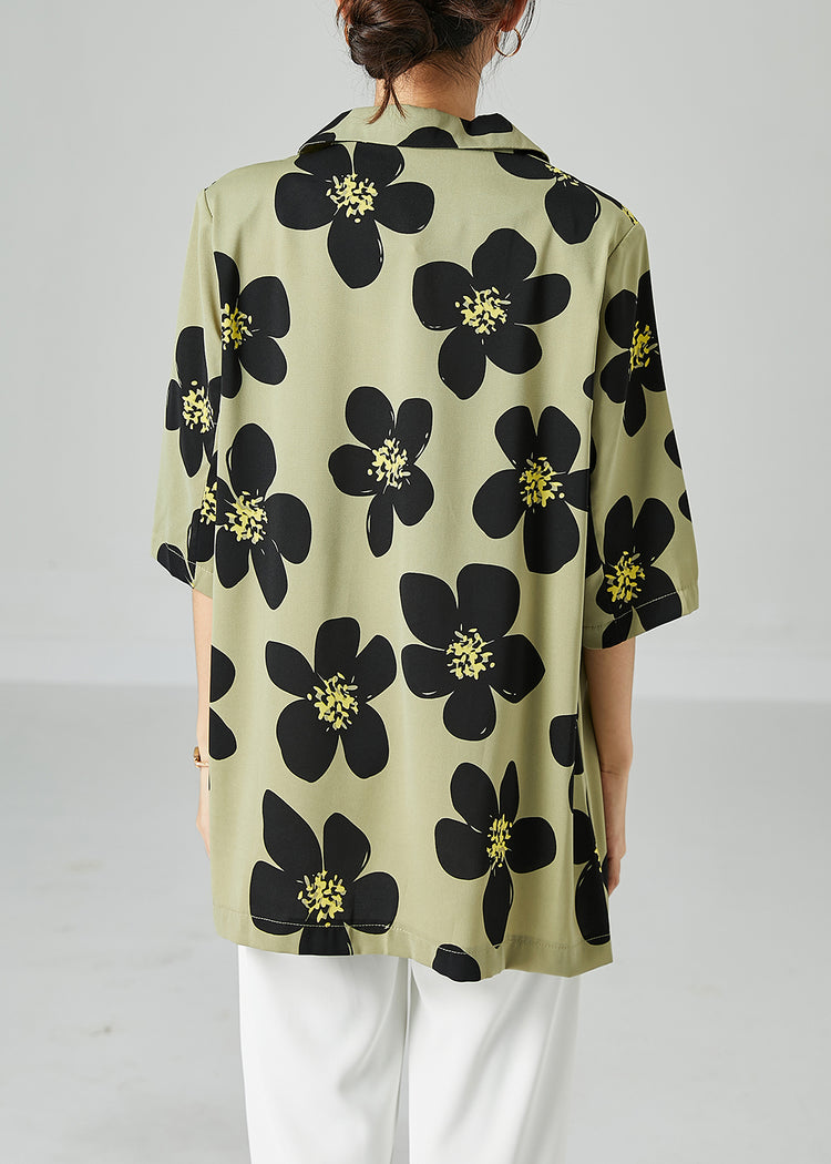 Green Print Silk Shirts Oversized Turn-down Collar Short Sleeve