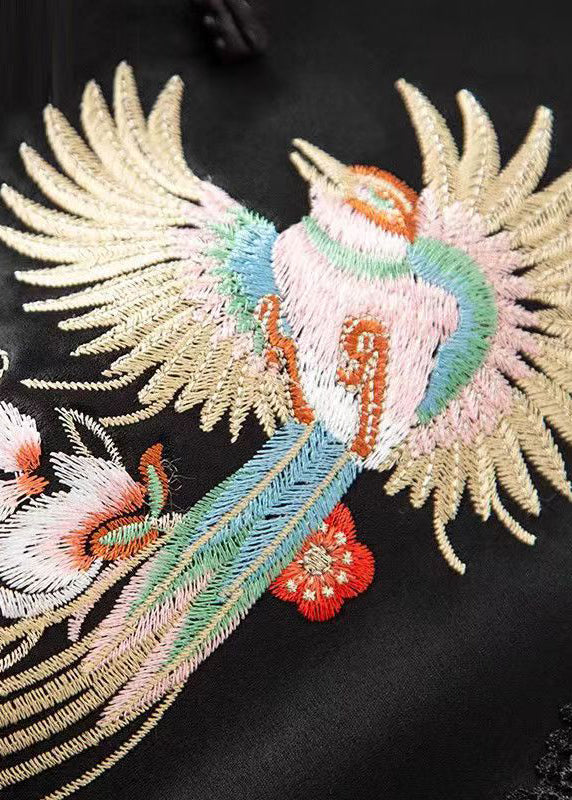 New Retro Black Embroidered Chinese Button Silk Vest Sleeveless