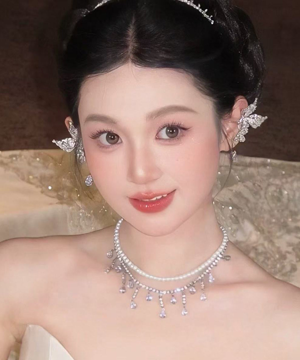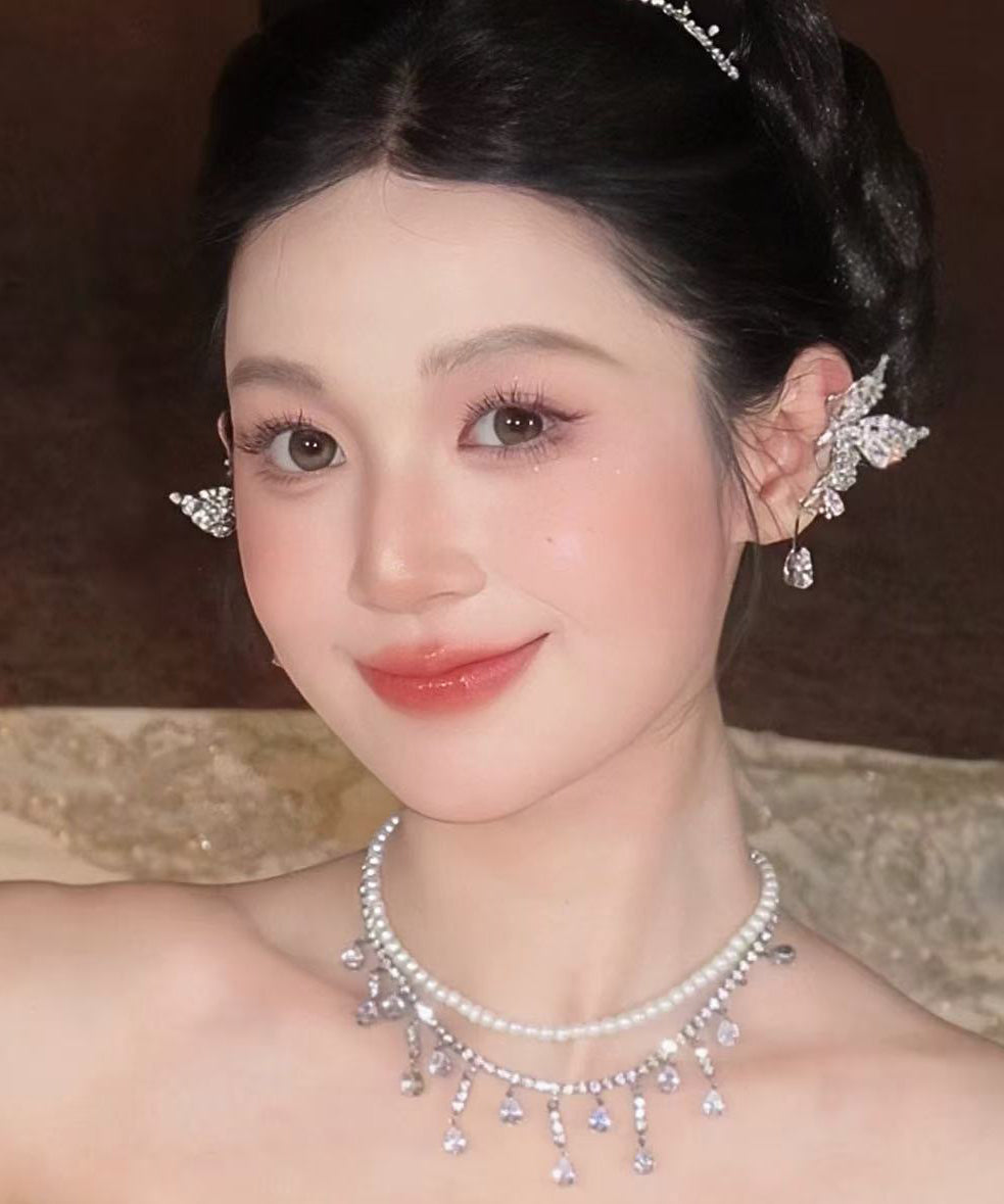 Regular Silk Copper Zircon Butterfly Water Droplet Stud Earrings