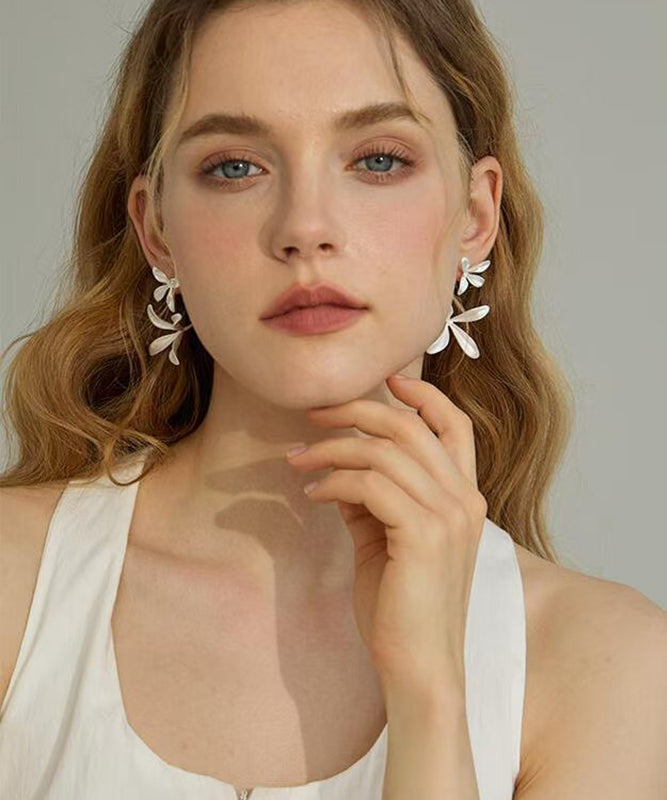 Style Silk Copper Overgild Enamel Drip Glaze Orchid Stud Earrings