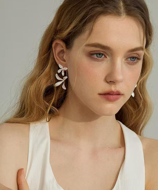 Art Silk Sterling Silver Zircon Rose Stud Earrings