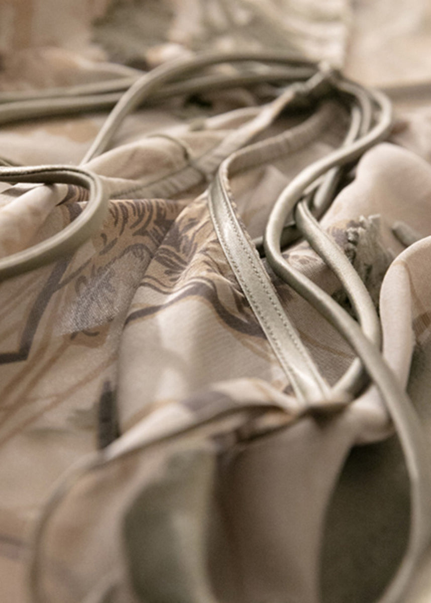 Art Khaki O-Neck Embroidered Tulle A Line Dress Summer