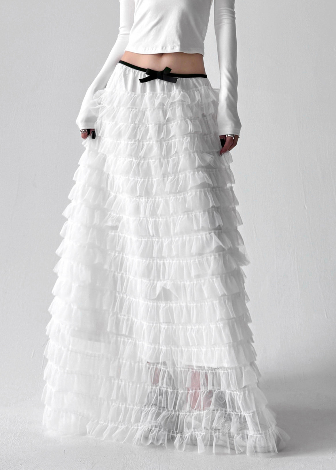 Boutique White Ruffled Layered Patchwork Tulle Skirts Fall